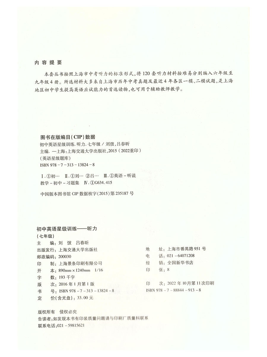 交大之星 初中英语星级训练 听力 七年级7年级上下册全一册 可扫码 初中初一第一第二学期英语听力题库 中考新题型 中学教辅