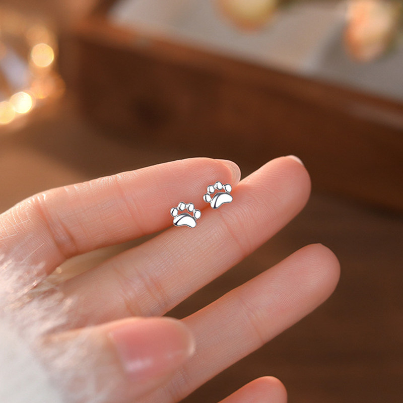 猫蛰足银999女生猫爪耳钉