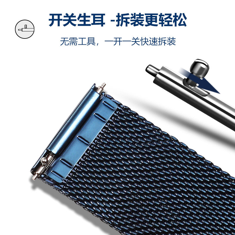 适配天梭1853杜鲁尔手表带钢带男女力洛克卡森T099蓝色钢表链19mm