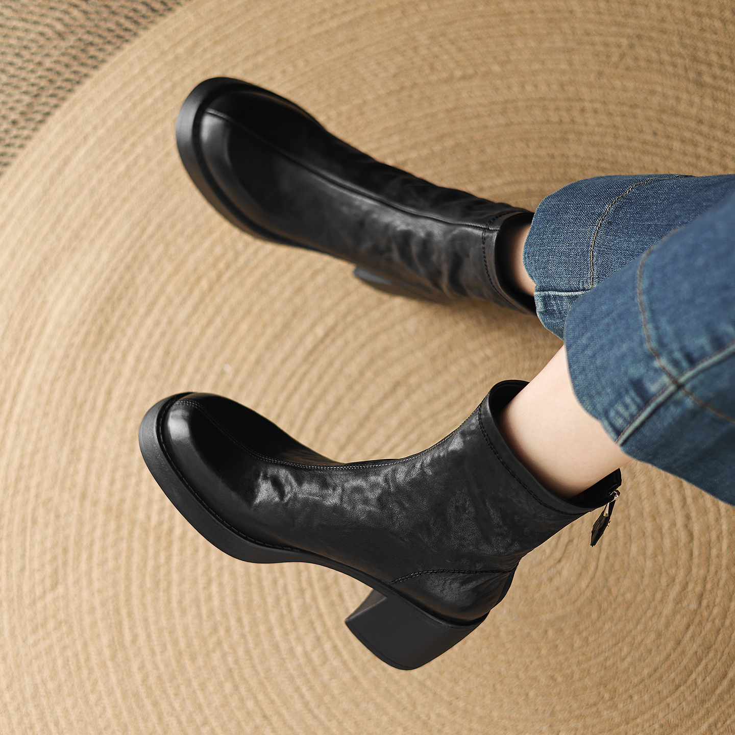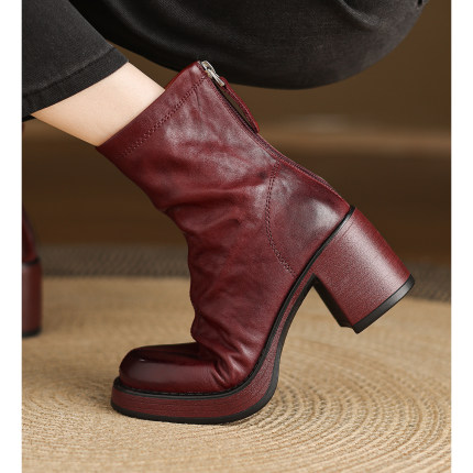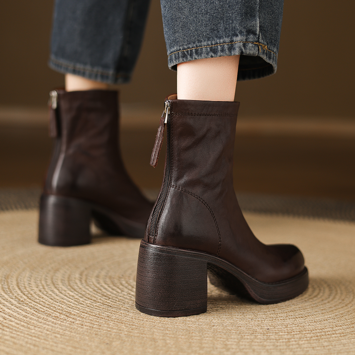 真皮马丁靴女春秋冬新款增高厚底短靴潮小个子7cm粗高跟单靴复古