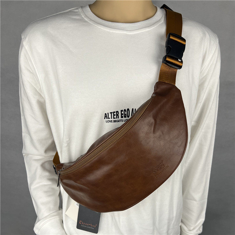 2025新款潮男单肩包 街头软皮日韩胸包 休闲胸前背包手机包斜腰包
