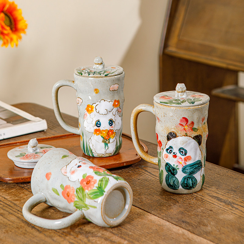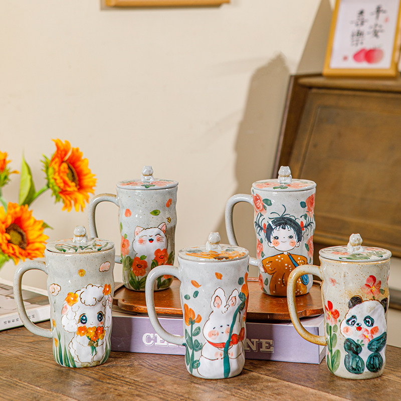手工马克杯陶瓷手绘复古可爱