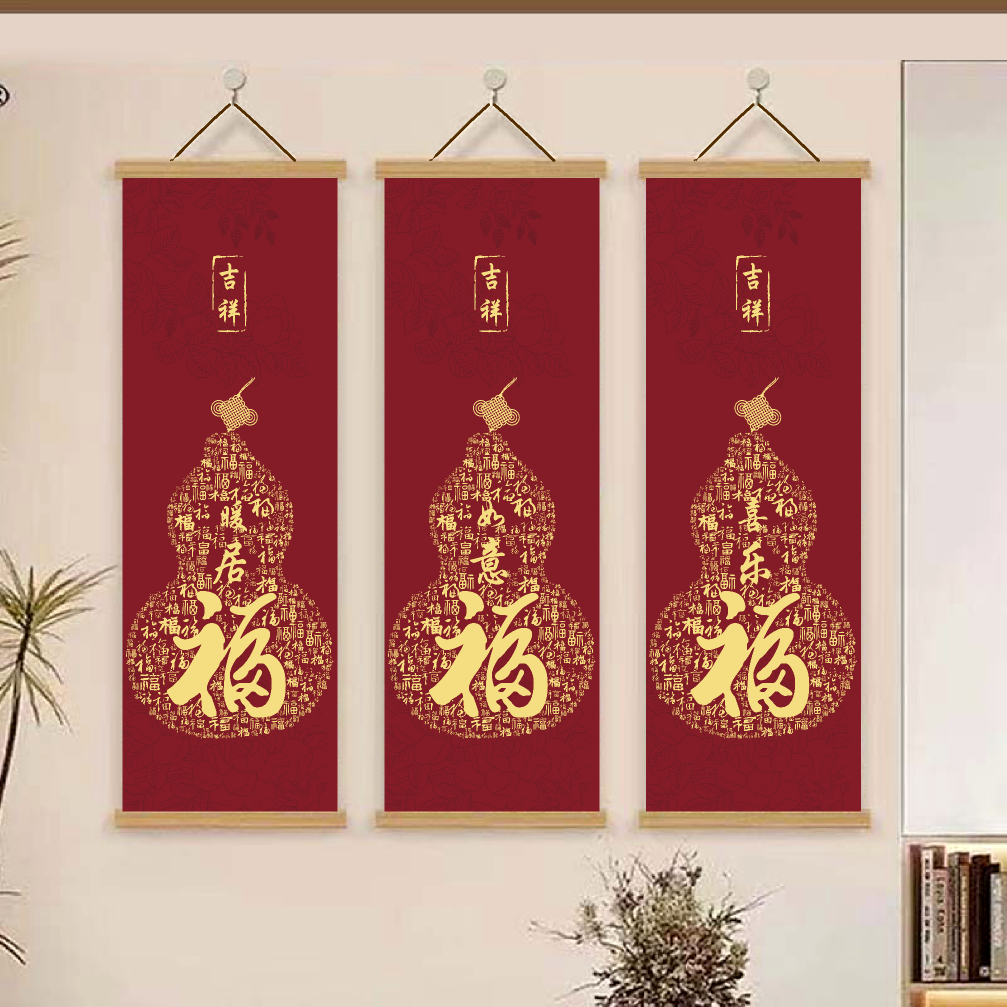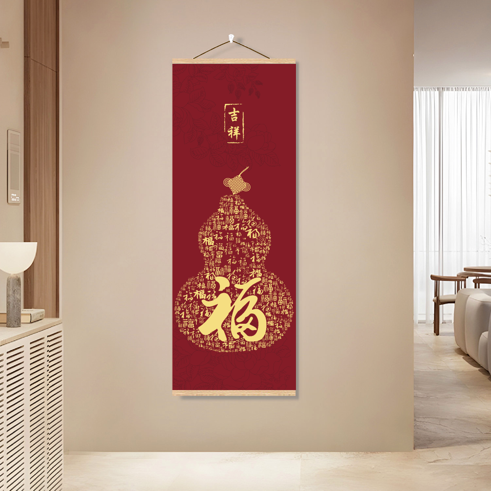 新年如意福挂画福字书法字画红色葫芦喜庆装饰画书房客厅玄关挂件