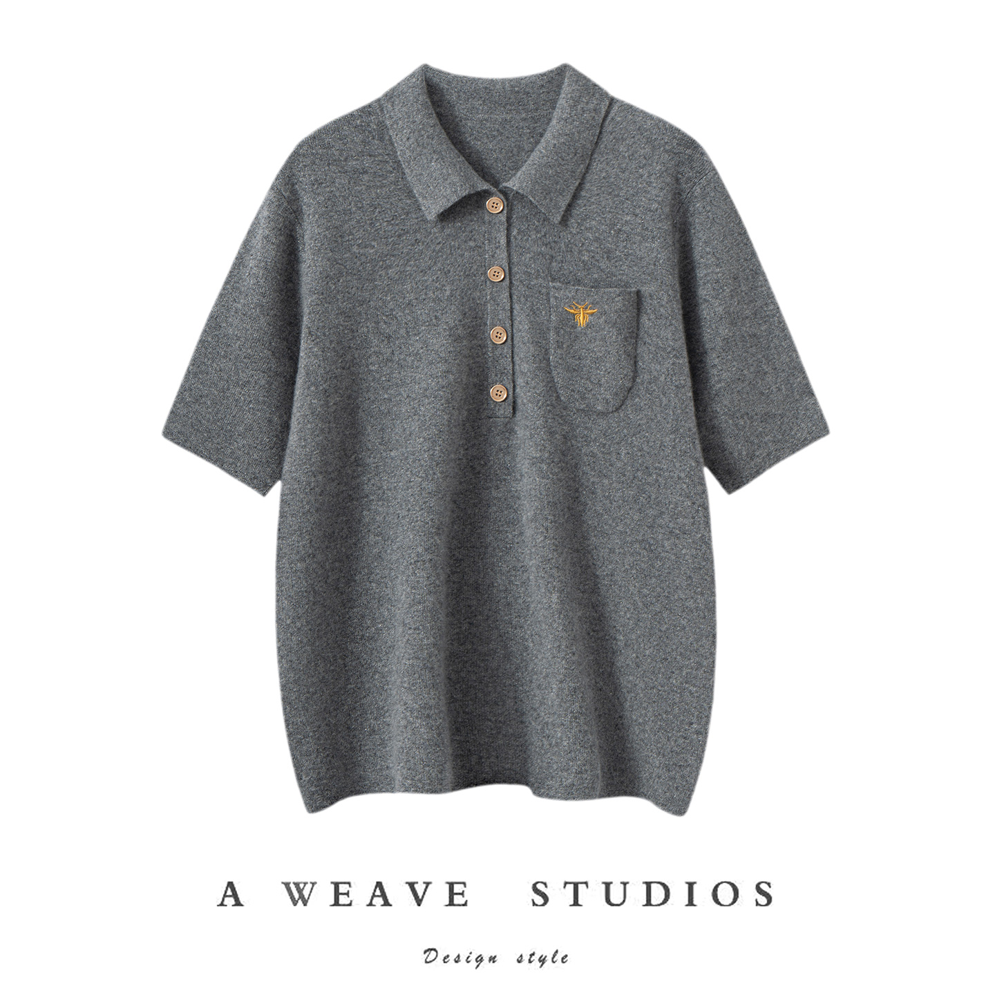 2025秋冬新款100%纯山羊绒衫女精纺Polo领刺绣百搭针织打底衫半袖