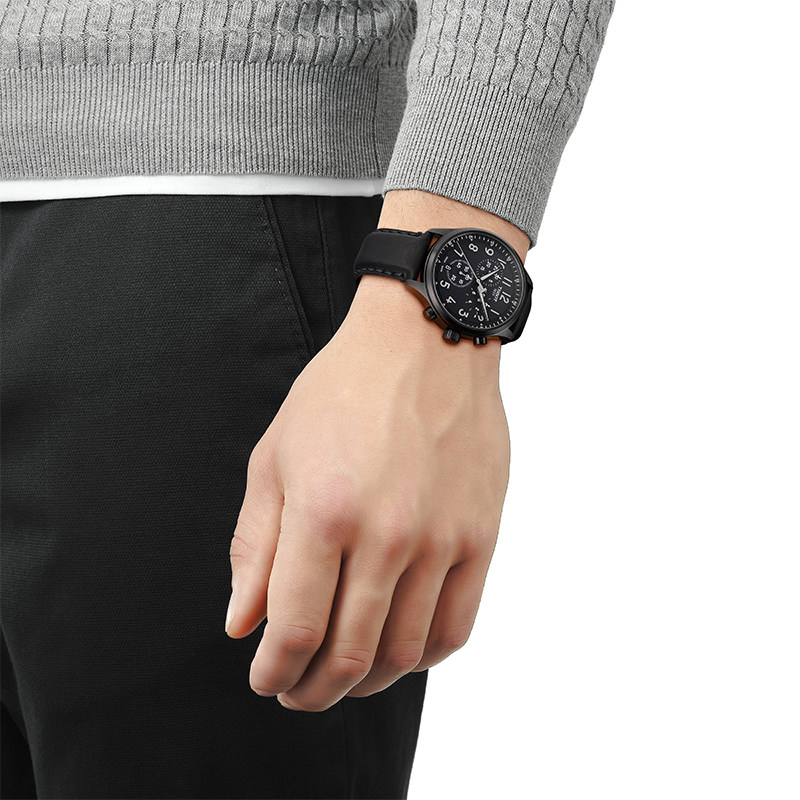 天梭速驰运动黑盘石英男表