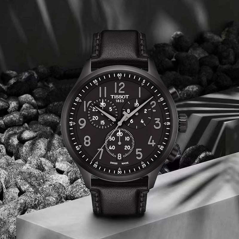 【新年礼物】Tissot天梭速驰系列运动男表皮带黑盘石英手表男官方