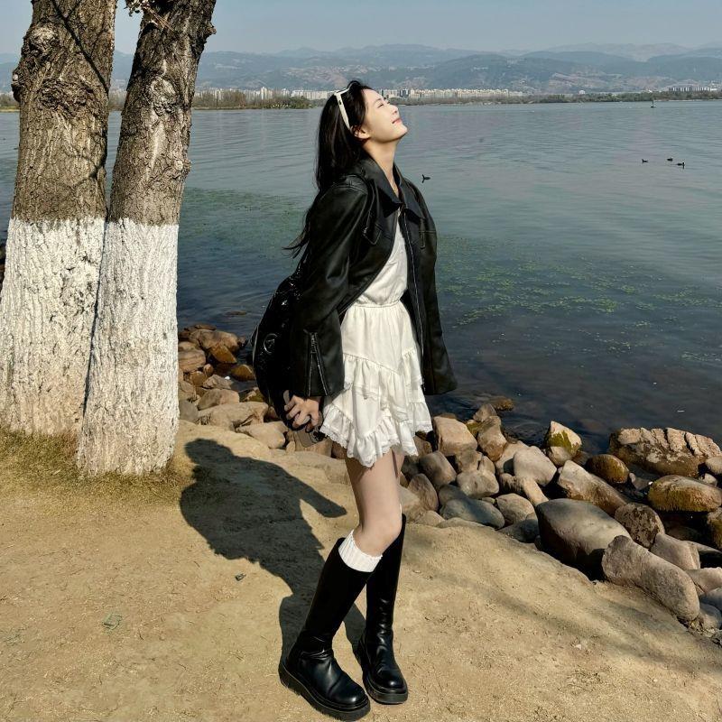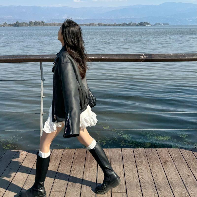女显瘦皮衣春秋季机车服短款复古夹克大尺码白色中年绝美漂亮女装