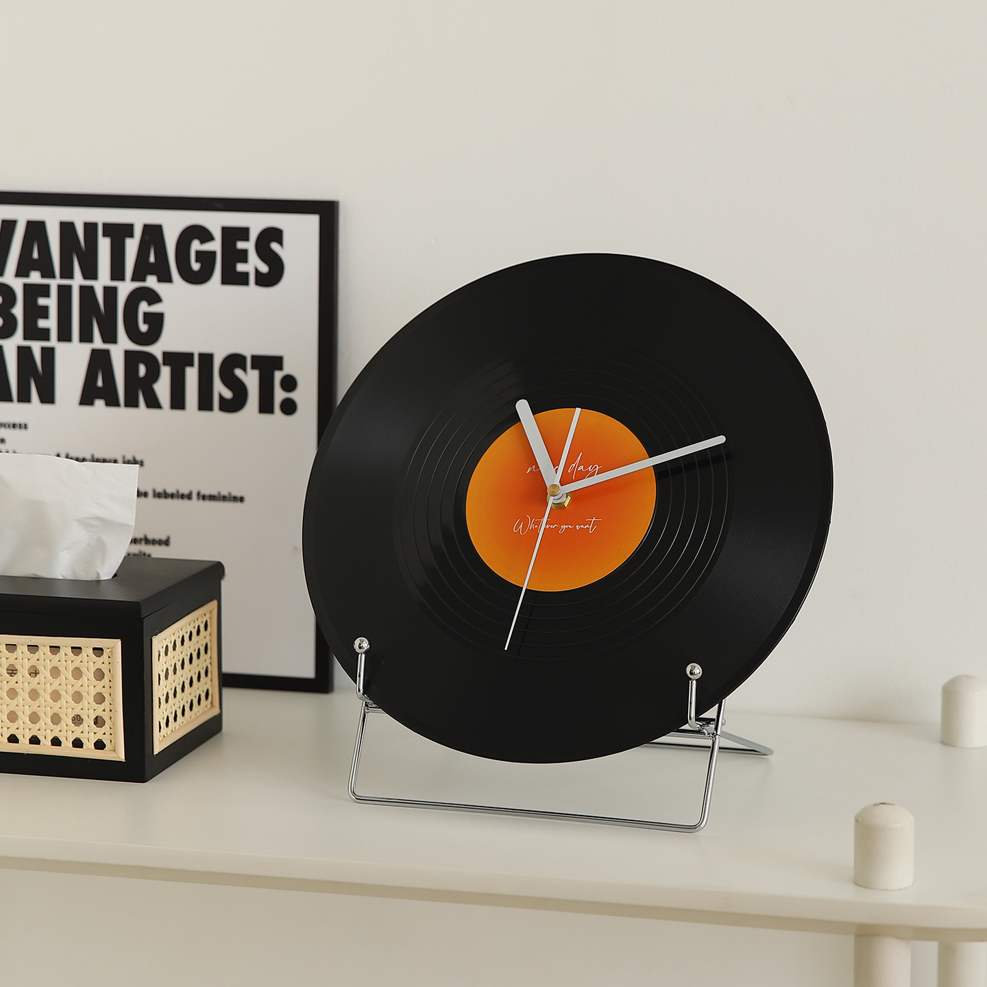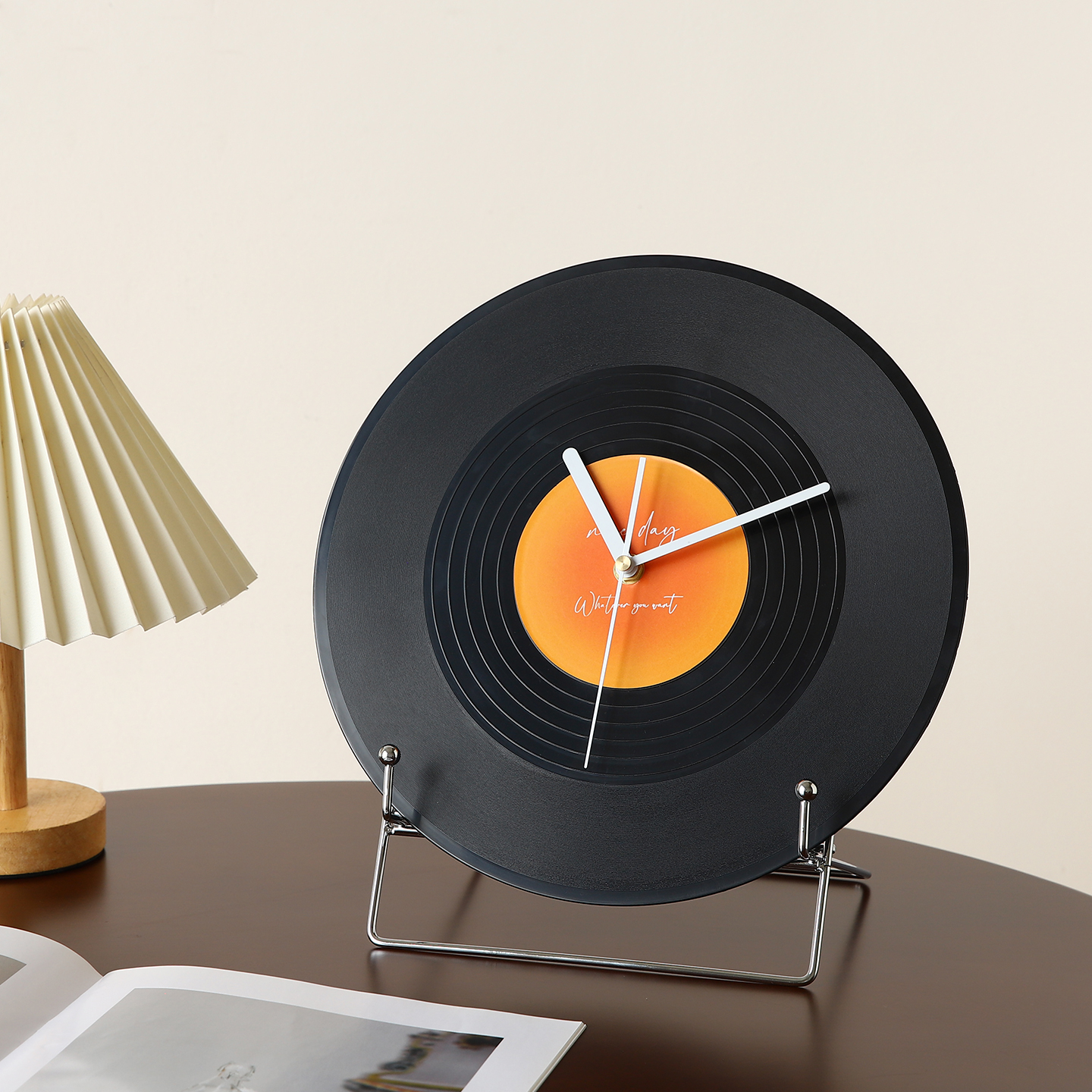 中古风复古黑胶唱片电视柜装饰品桌面时钟摆件客厅家居高级感小众