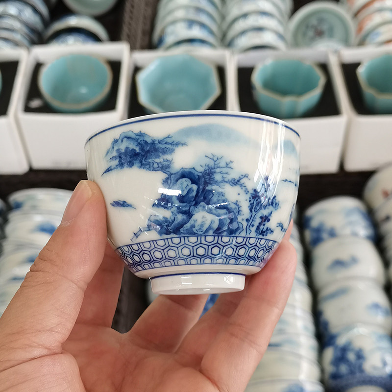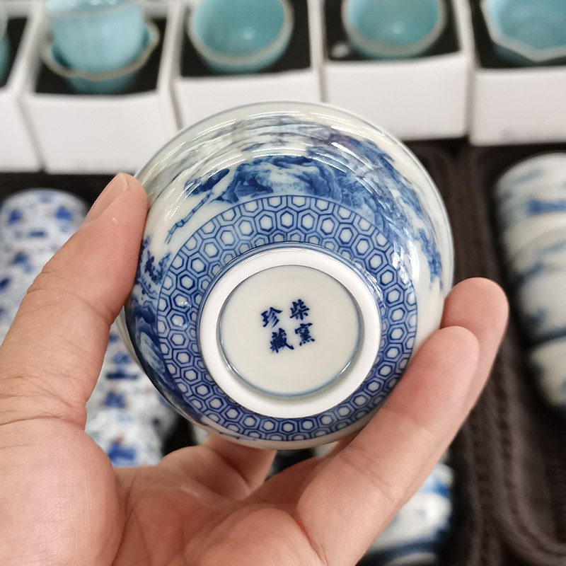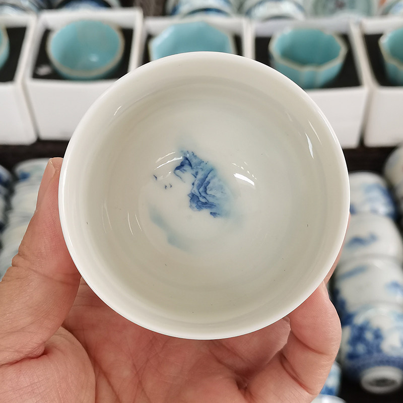 青花瓷山水压手杯景德镇陶瓷柴窑主人杯个人专用茶杯高档男士单杯