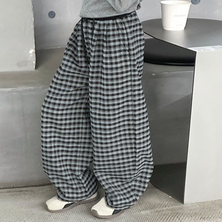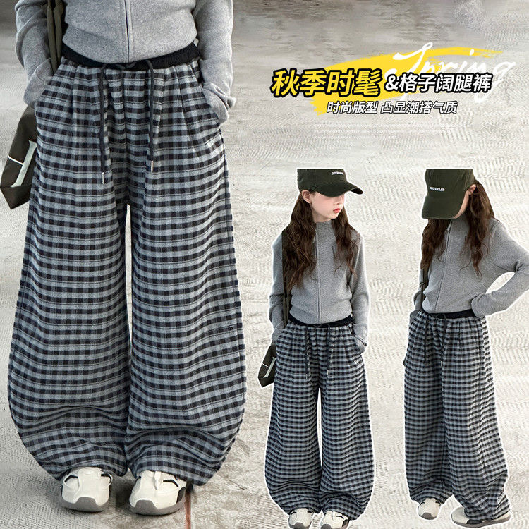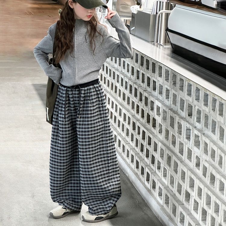 女童秋季新款套装休闲纯色拉链上衣格子弯裤休闲百搭两件套HTZ039