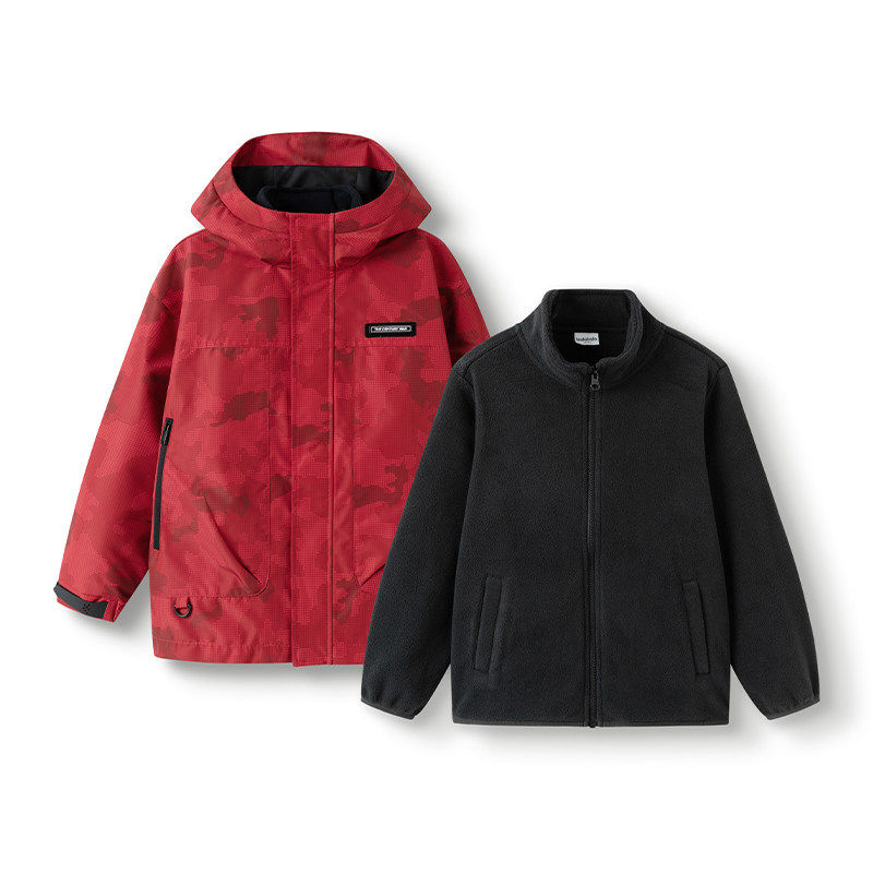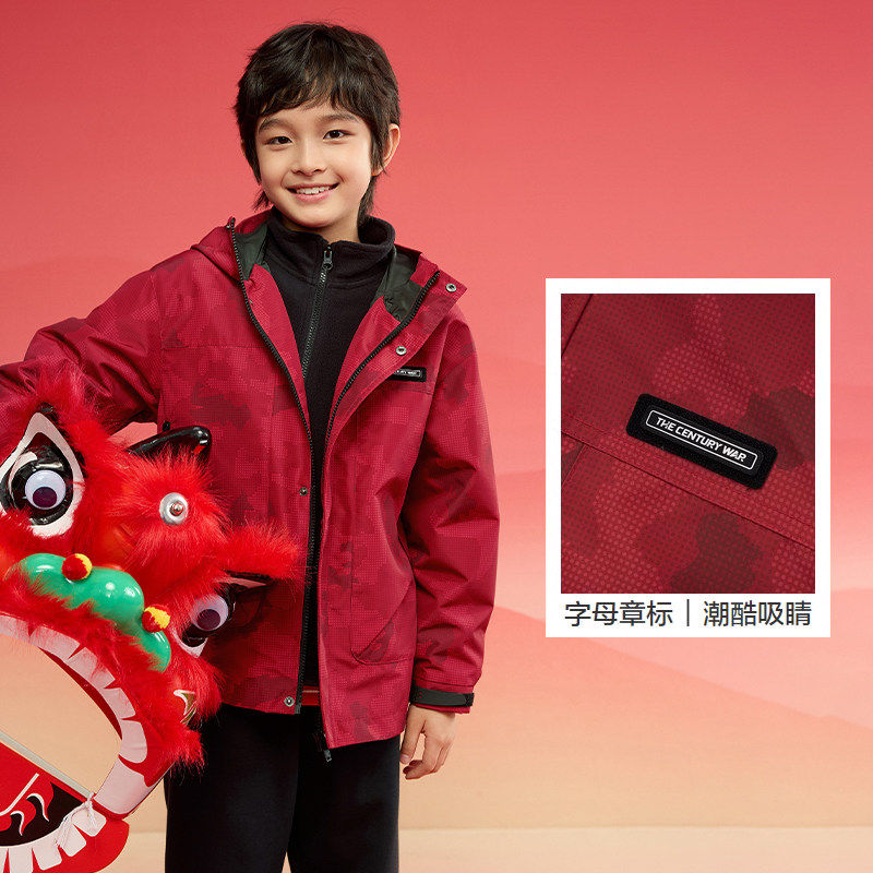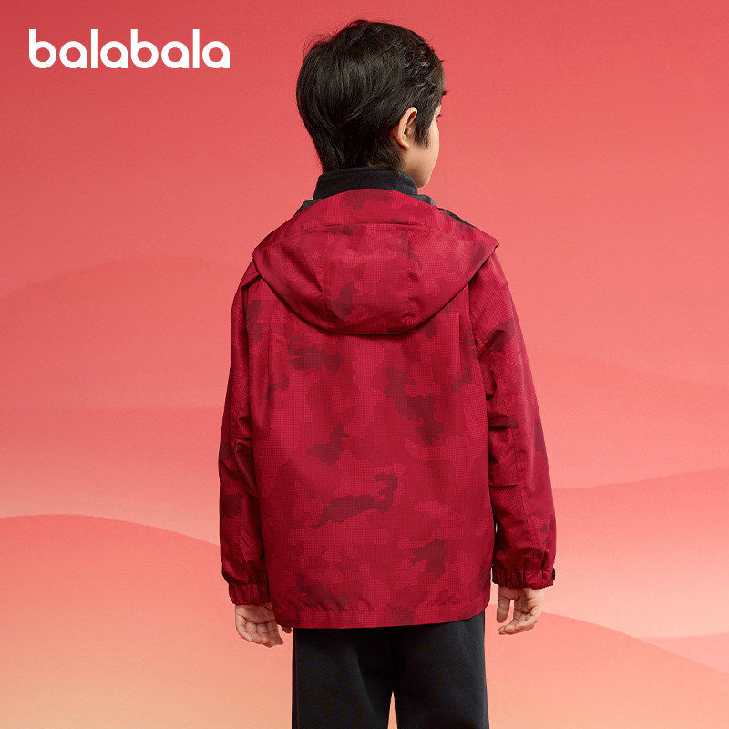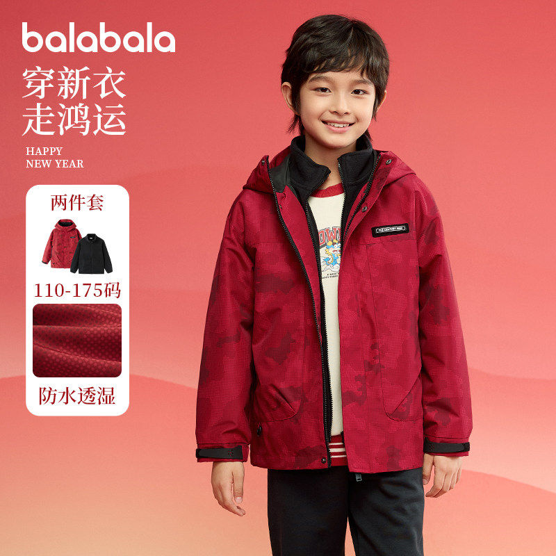 巴拉巴拉男童棉服大童红色外套儿童新年款上衣2025春装新款童装潮