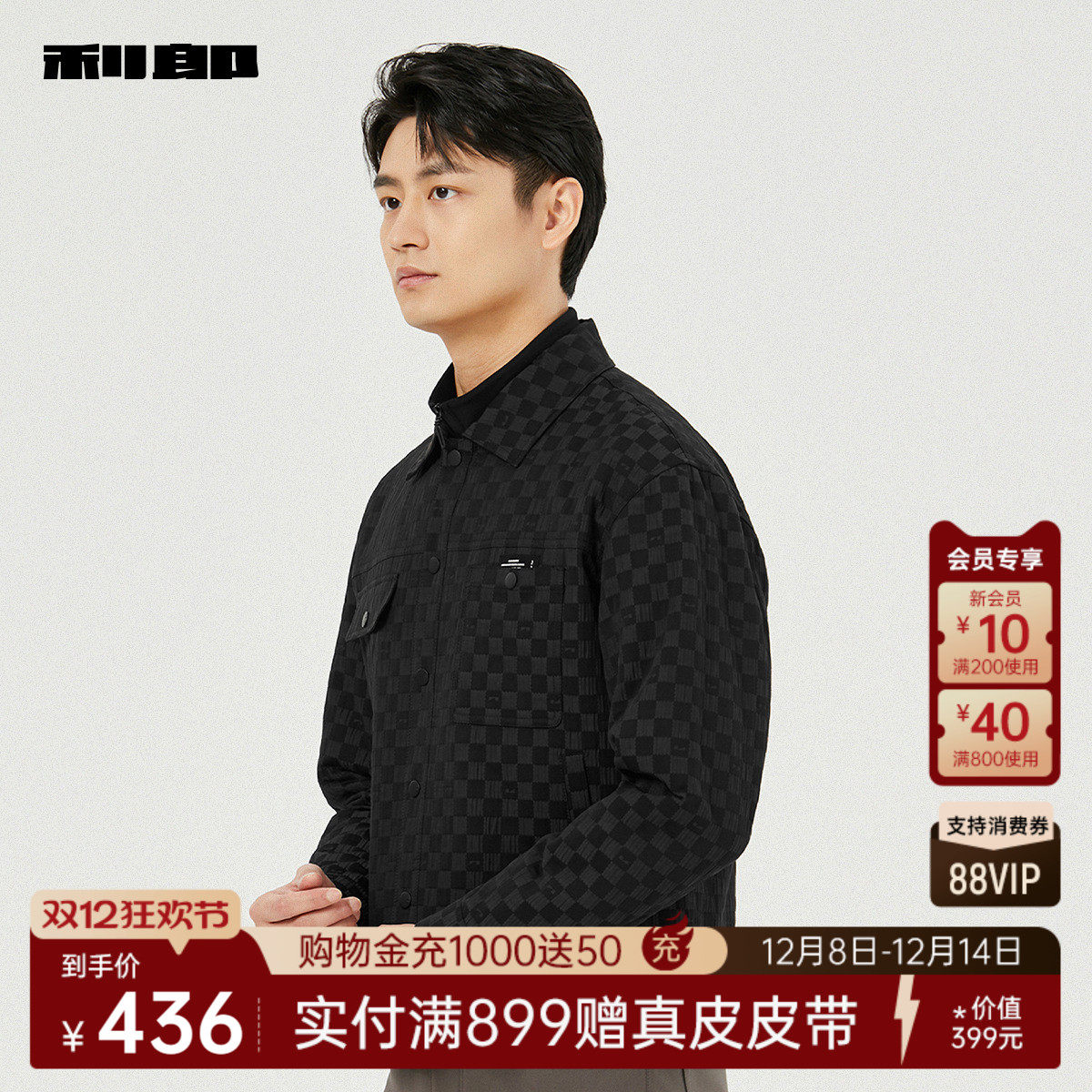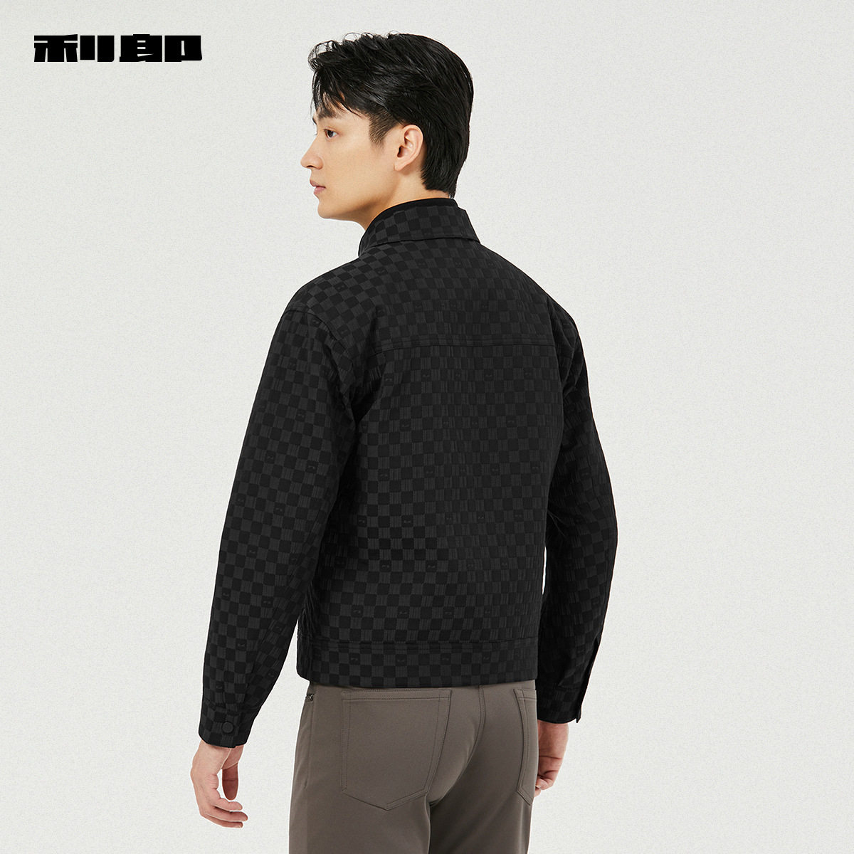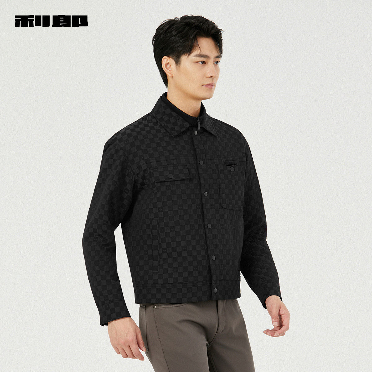 利郎奥莱 肌理格纹夹克男士2025秋季新款休闲翻领短款男装外套