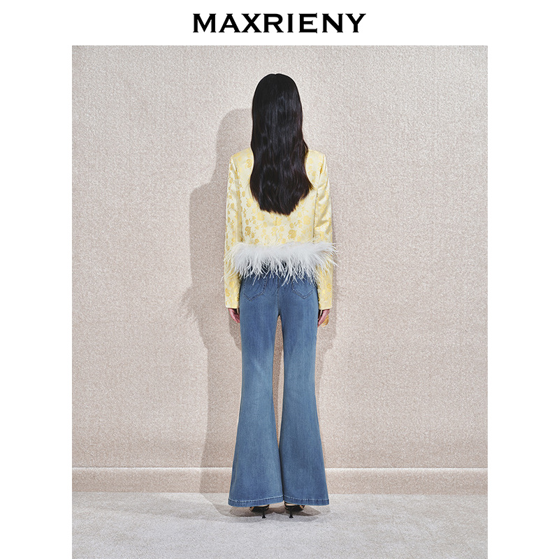 【商场同款-节庆新中式】MAXRIENY休闲日常感修身微喇牛仔裤女
