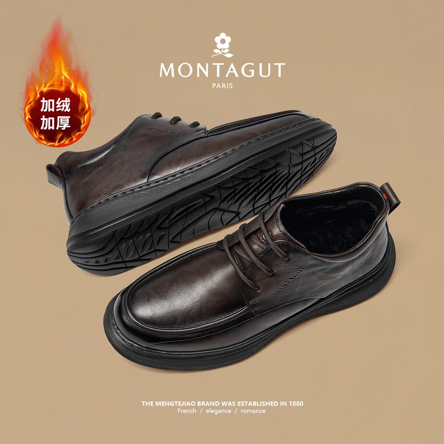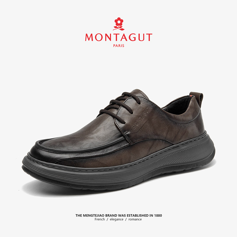 梦特娇官方旗舰头层牛皮休闲皮鞋