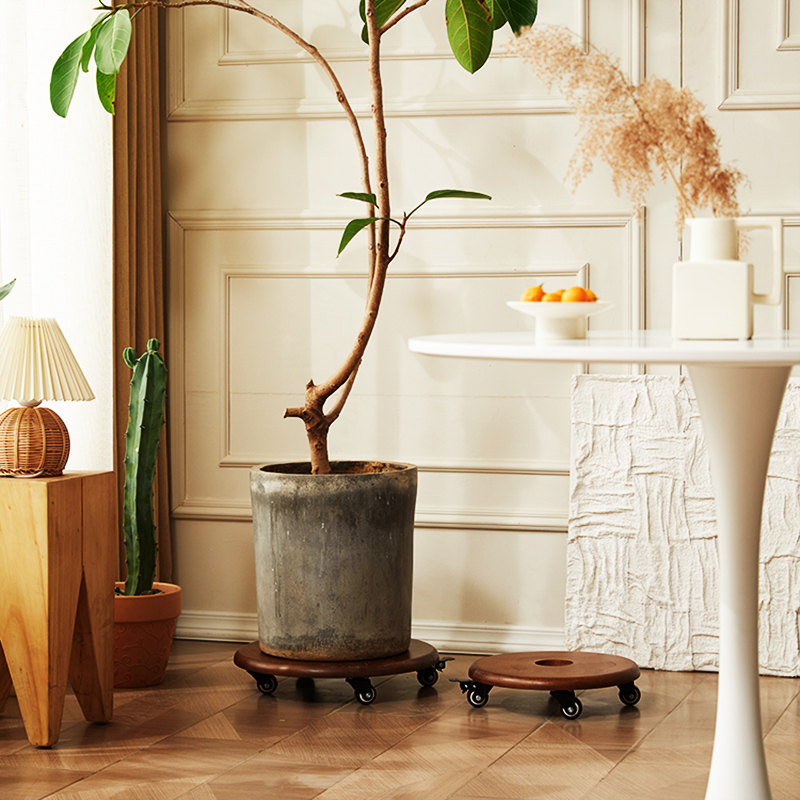 榉木花盆托盘万向轮加厚实木移动带轮底座水缸酒罐底托承重花托