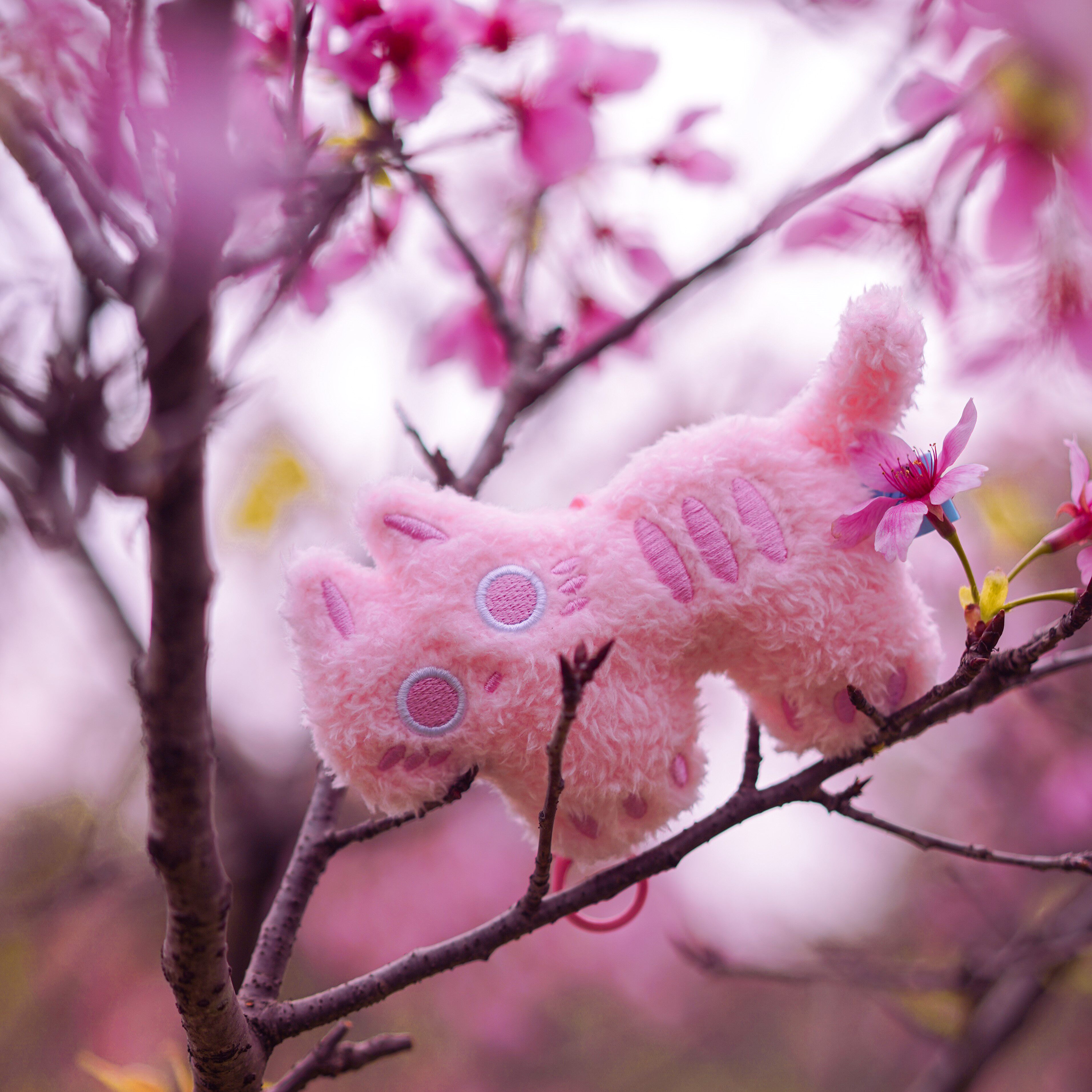 好运小猫-猫猫守护神樱花猫花语小猫咪形玩偶毛绒挂件原创设计