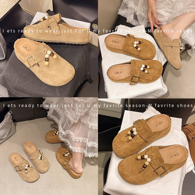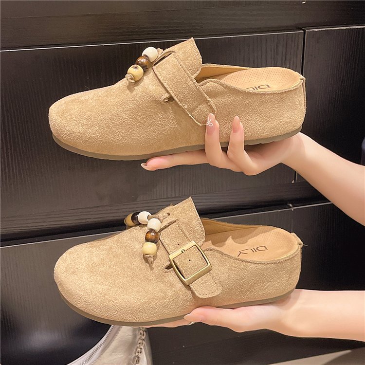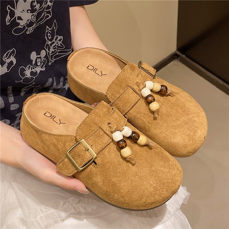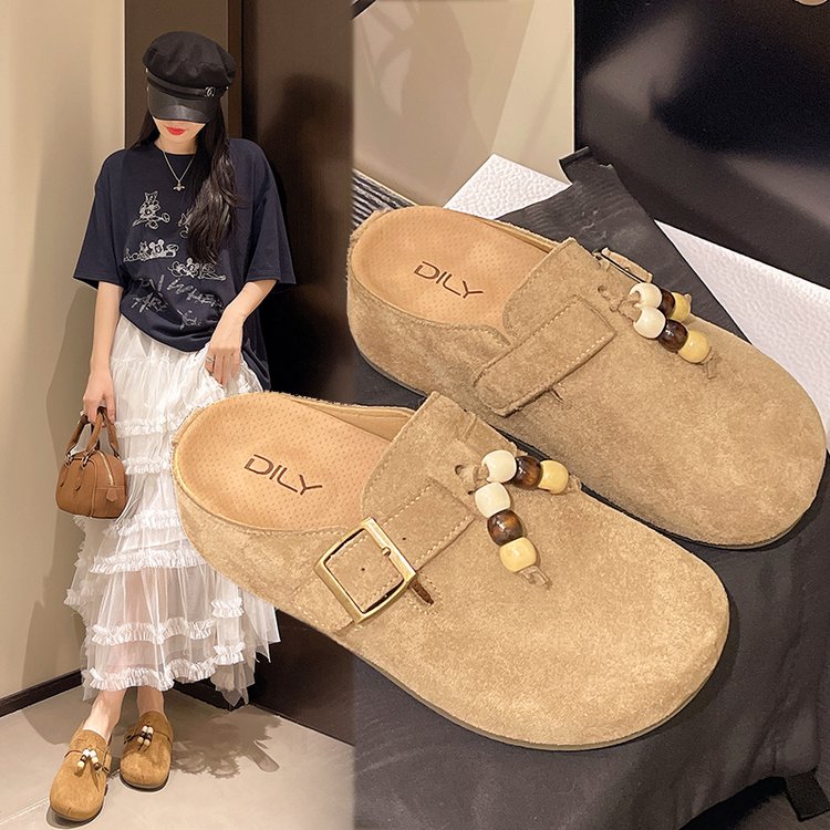 【妮娅专享】XY649新款磨砂牛皮休闲内增高勃肯包头拖鞋