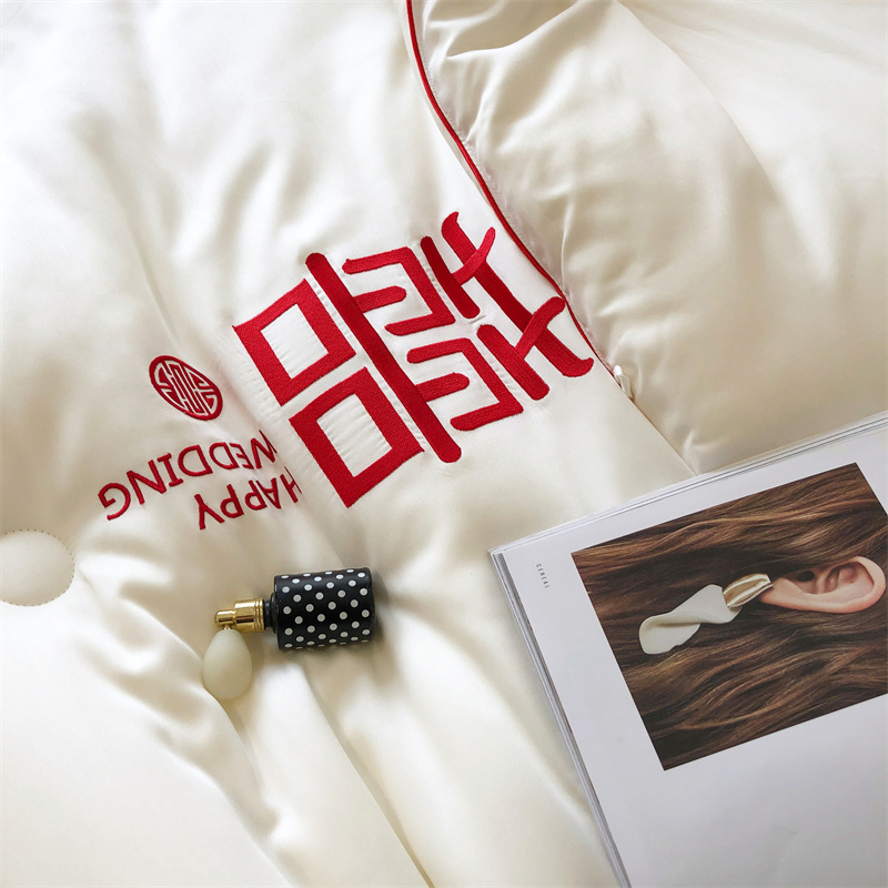 结婚60支长绒棉刺绣婚庆喜字被芯
