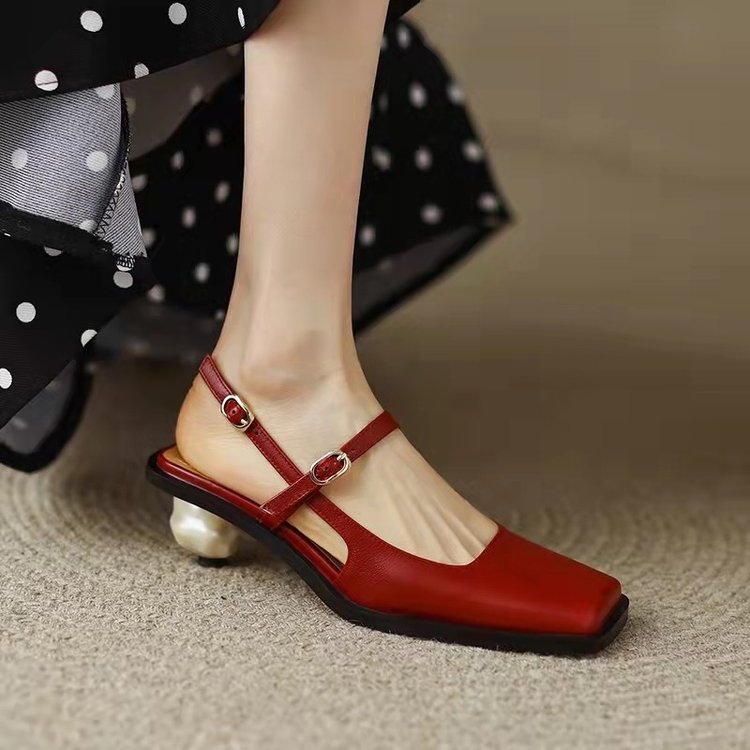 2025冬季新款时装凉鞋女鞋中跟(3-5cm)橡胶2022年春季PU方跟一字
