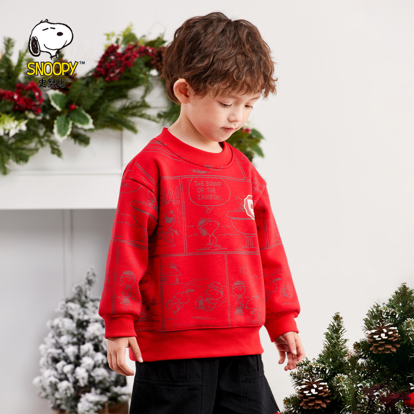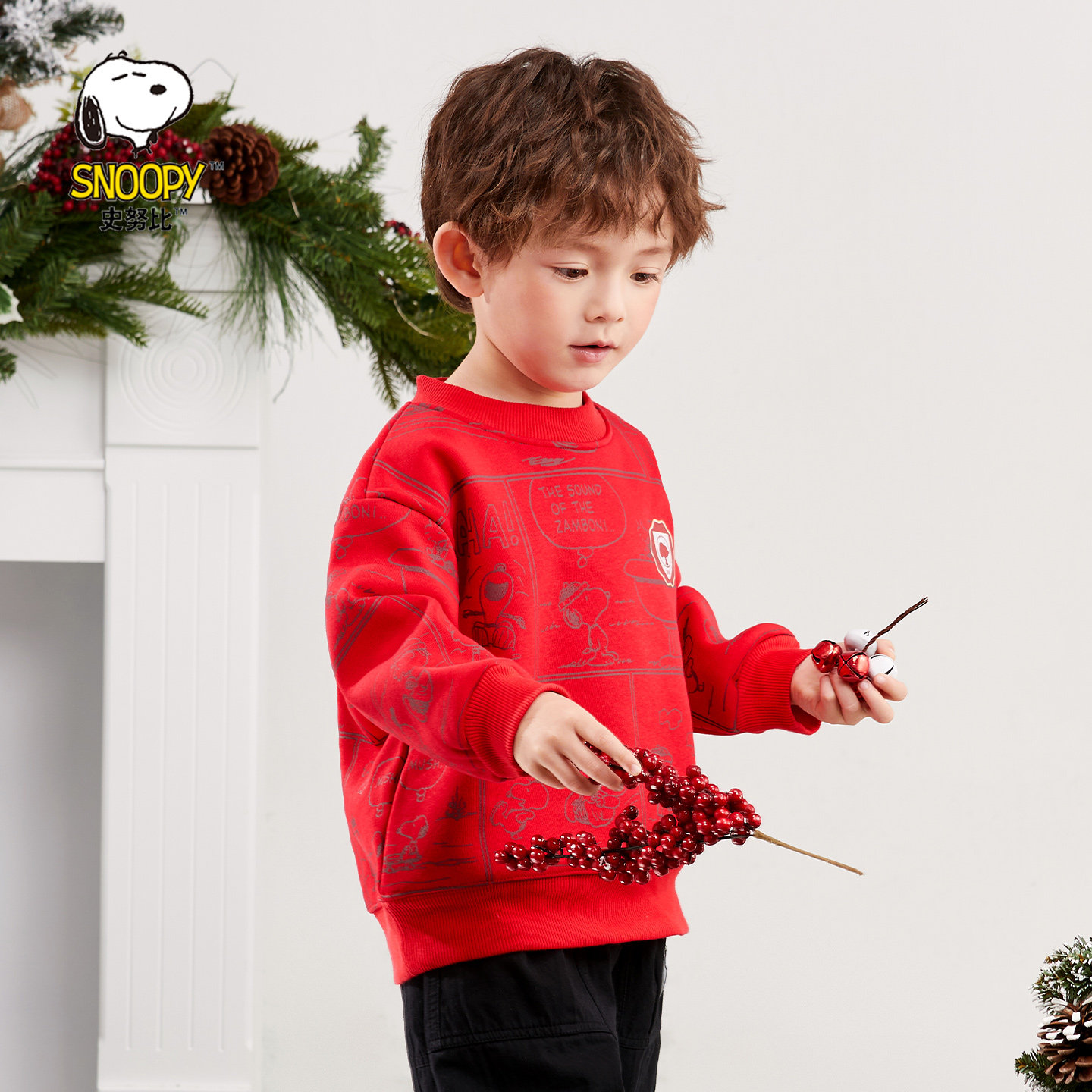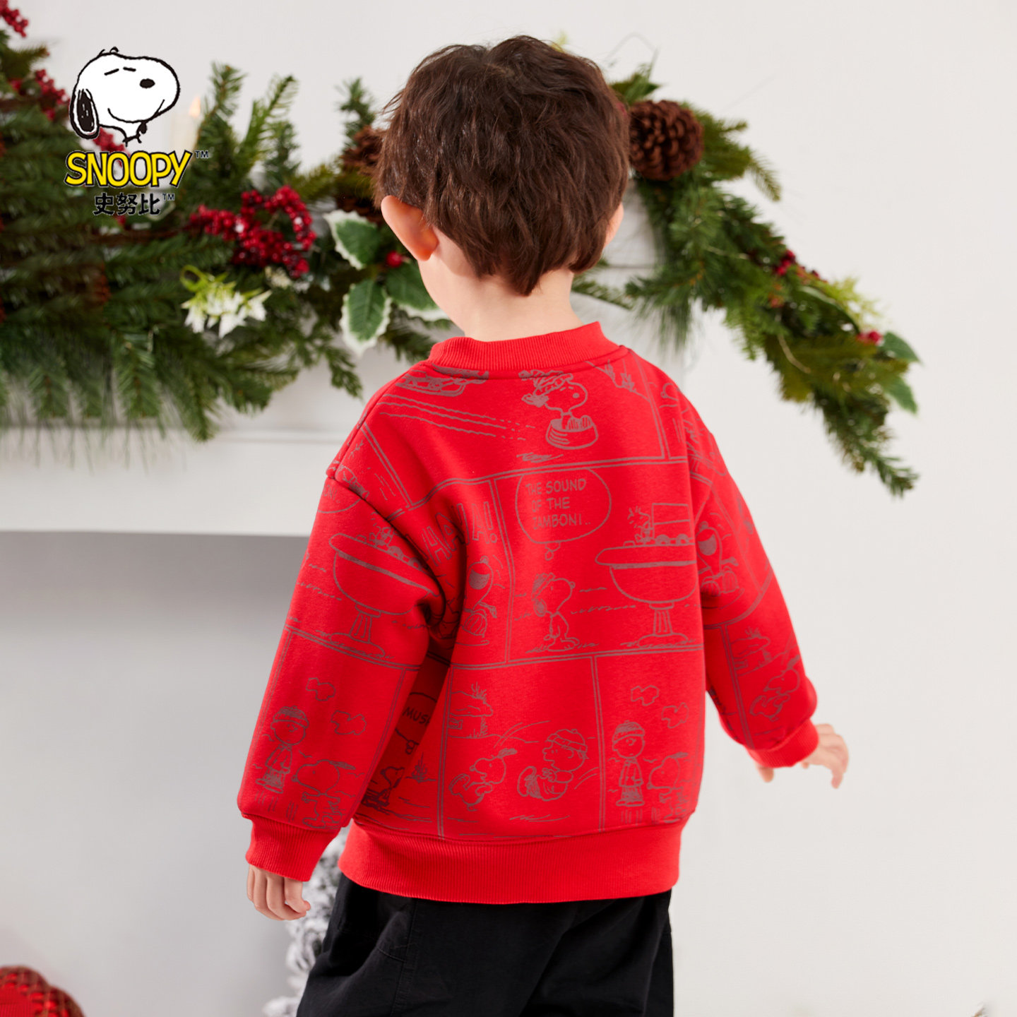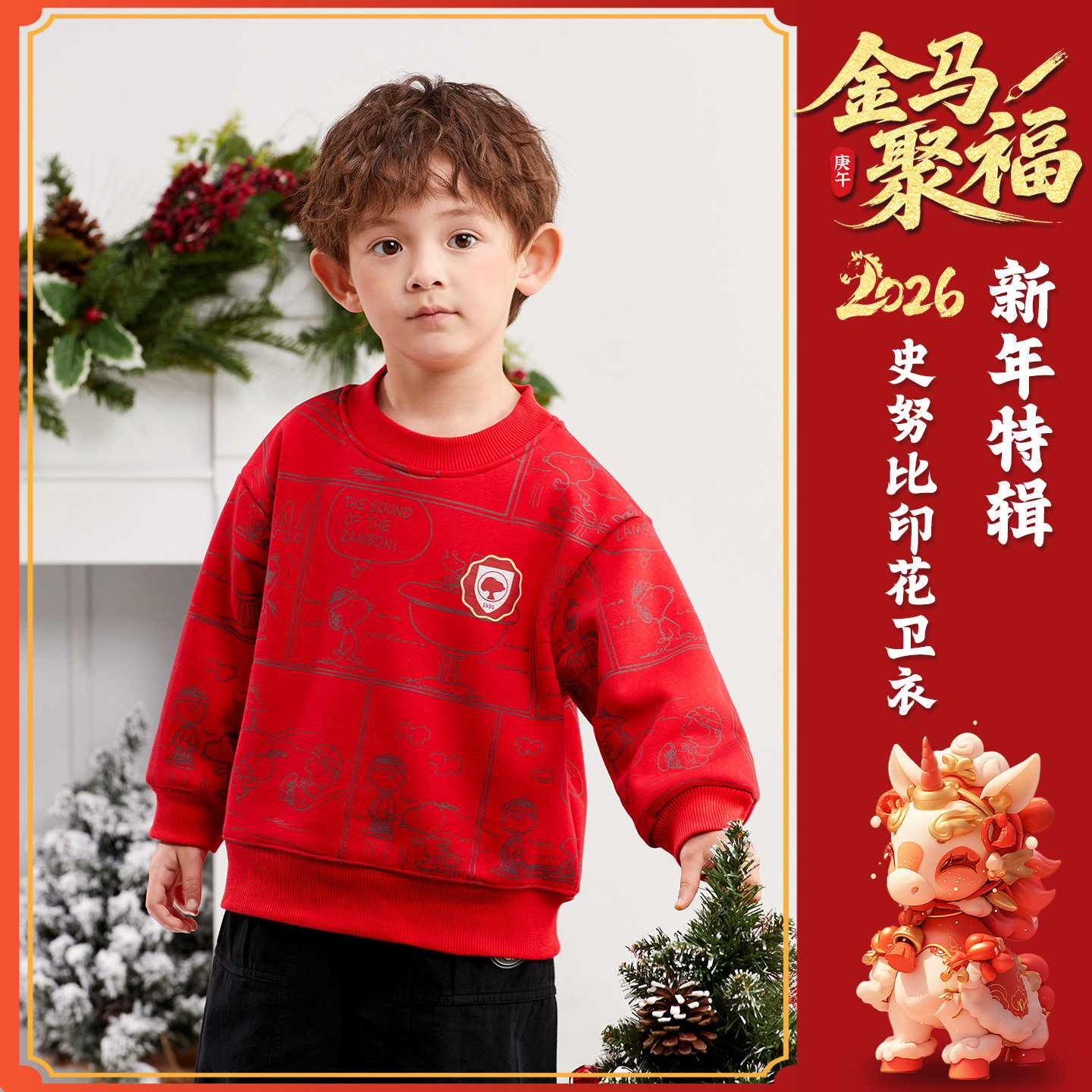 史努比童装男童红色卫衣新年服
