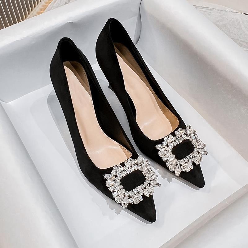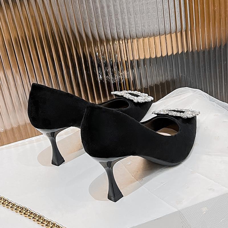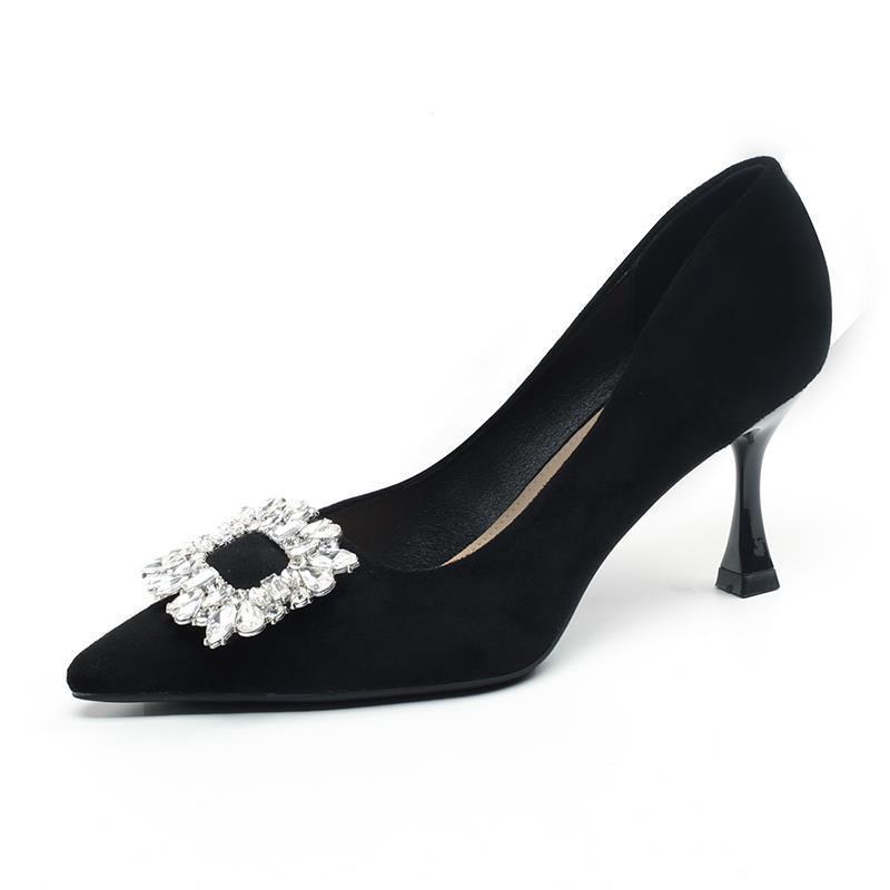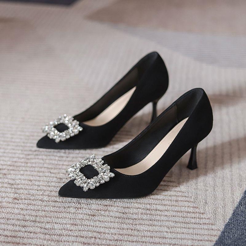 法式尖头水钻高跟鞋女春季年新款细跟大码百搭黑色职业单鞋女