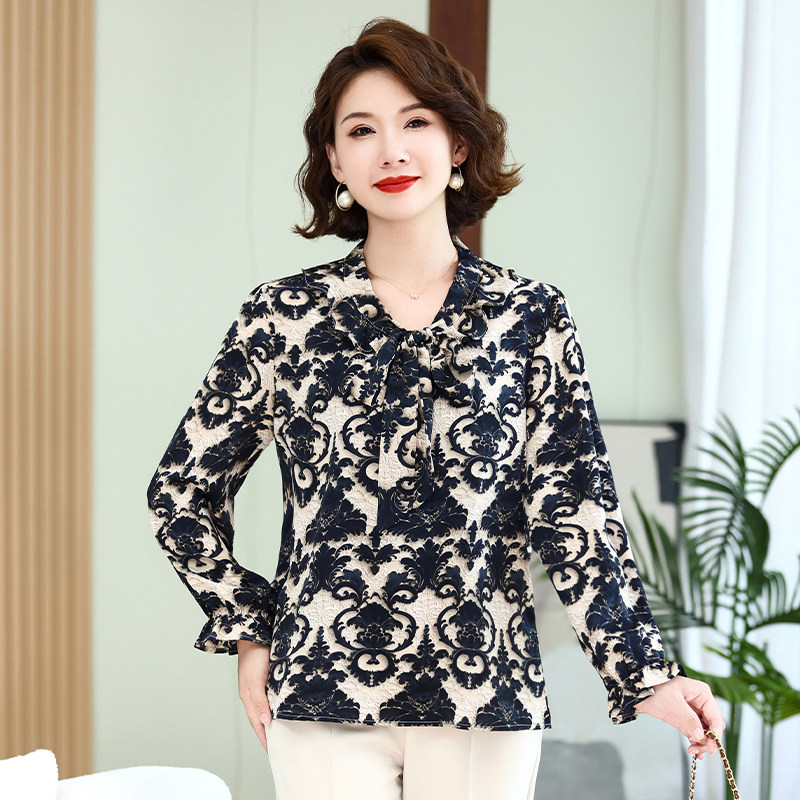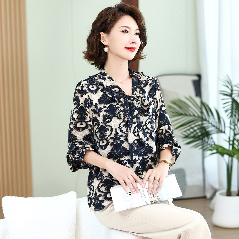 中年妈妈春装雪纺小衫上衣服2025新款洋气中老年女装春秋季打底衫