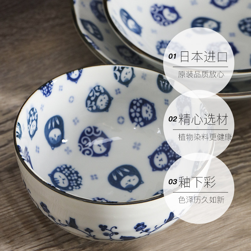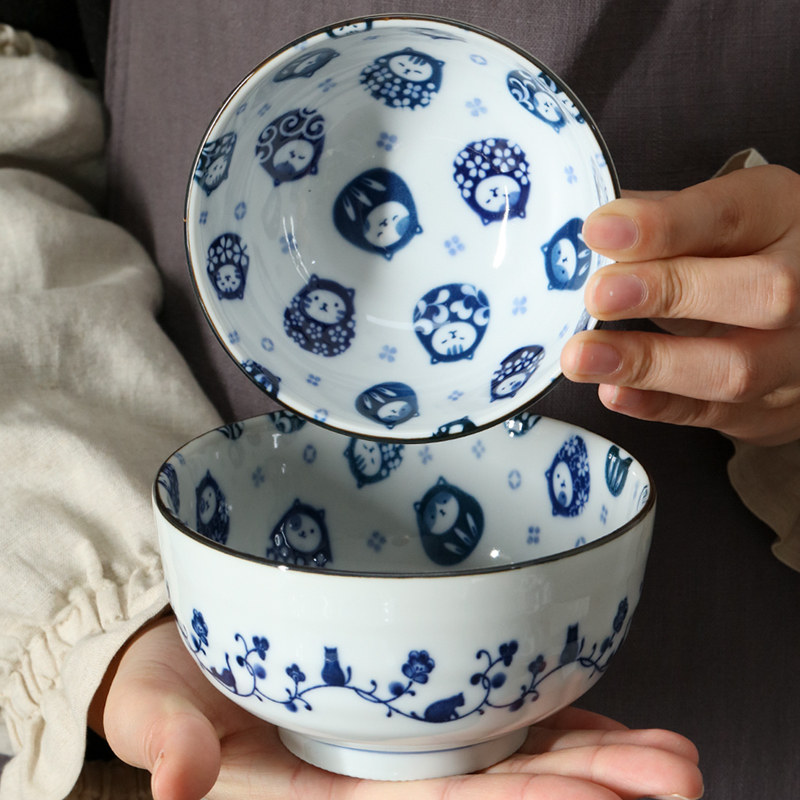 【自营】美浓烧日本进口陶瓷餐具舞猫达摩系列饭碗面碗深盘平盘