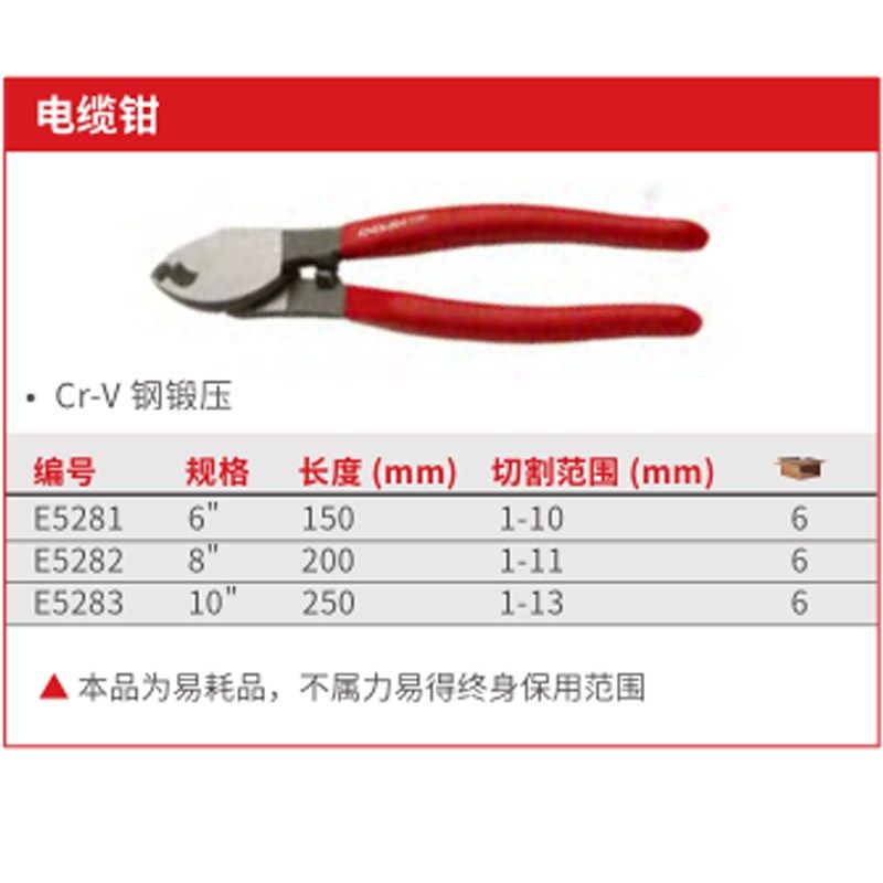 力易得CrV电缆钳电缆切割钳子电缆断线钳电缆剪E5281/E5282/E5283