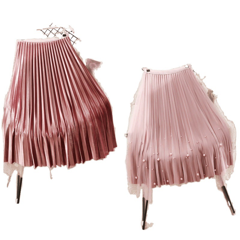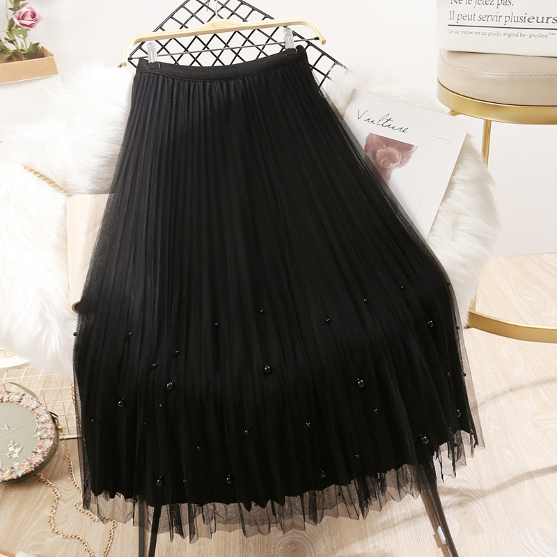 两面穿金丝绒半身裙女秋冬纱裙2025新款a字百褶裙中长款网纱裙子