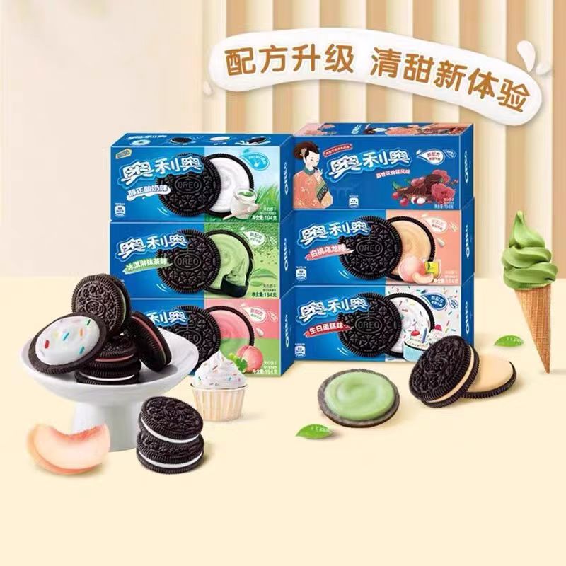 奥利奥夹心饼干194g*4盒奶酪巧克力味白桃乌龙冰淇淋抹茶零食饼干