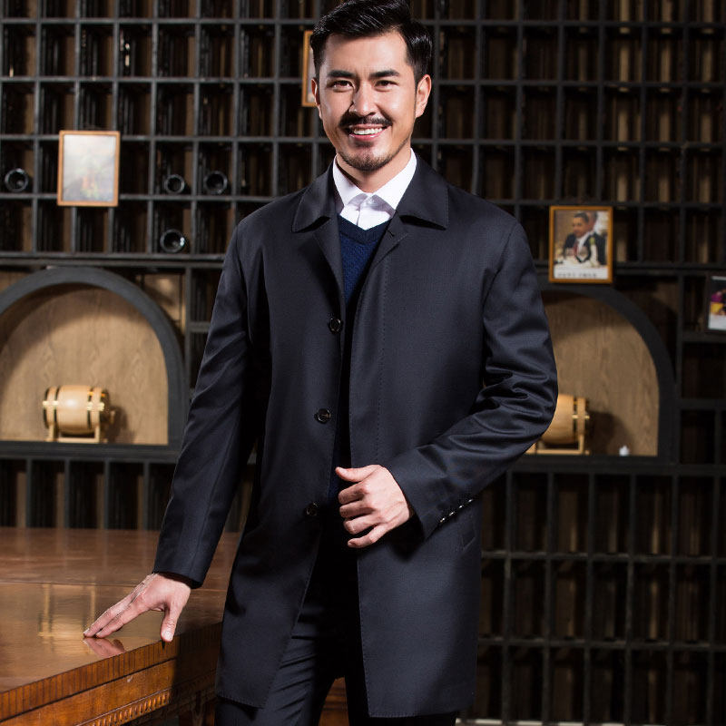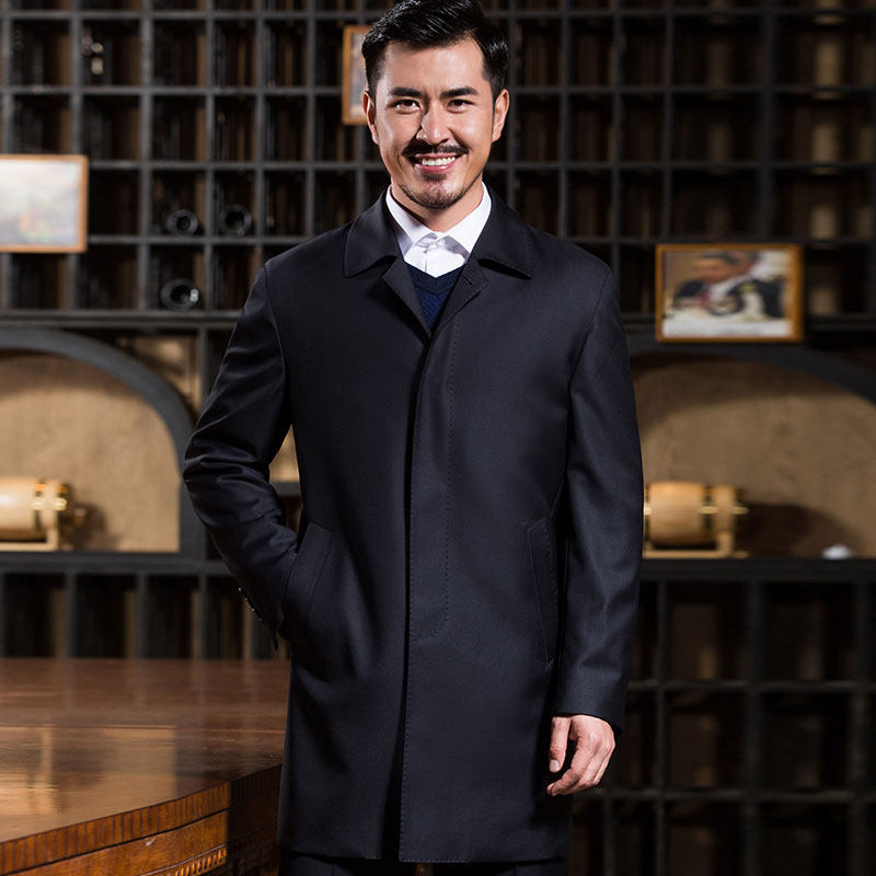 红都风衣男士秋装新款翻领羊毛大衣中长款商务男装长款帅气外套
