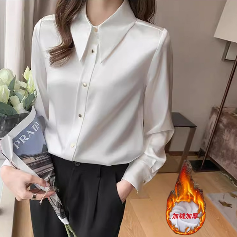 长袖缎面白衬衫女通勤加绒加厚