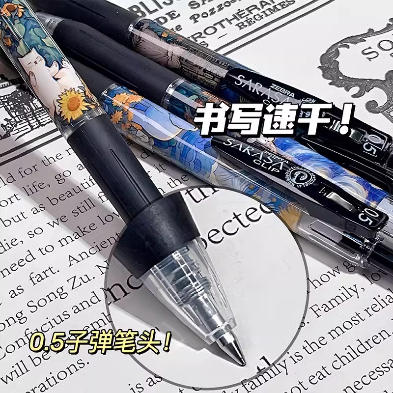 日本ZEBRA斑马中性笔JJ15梵高限定款按动速干黑色水笔向日葵莫奈星空学生礼品文具礼盒套装官方旗舰店官网