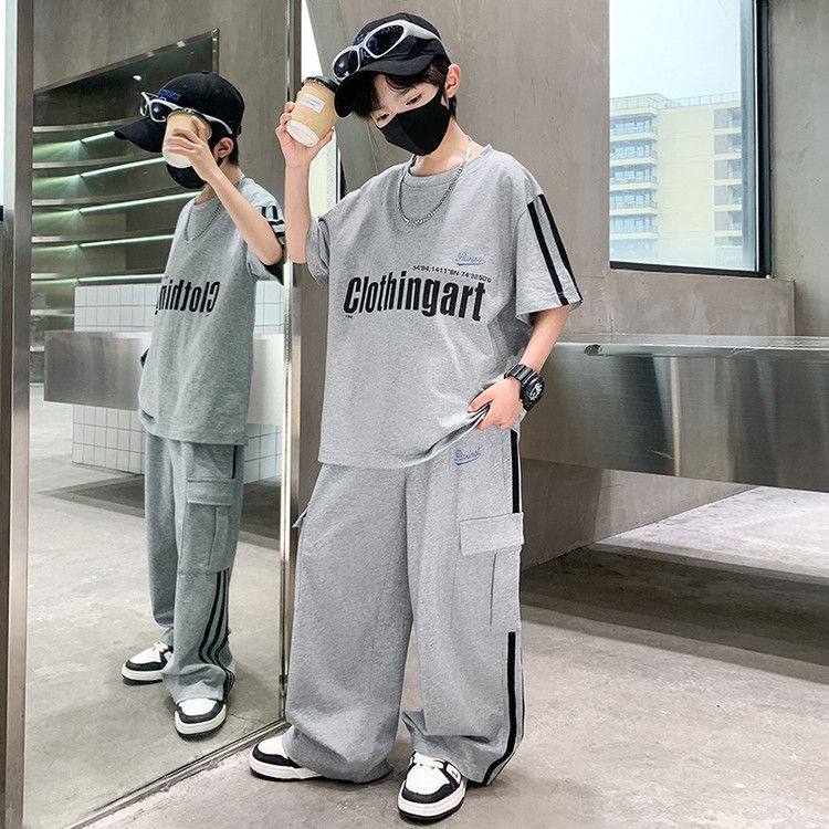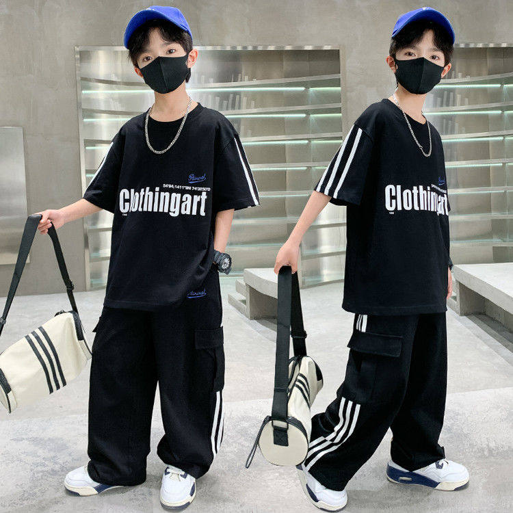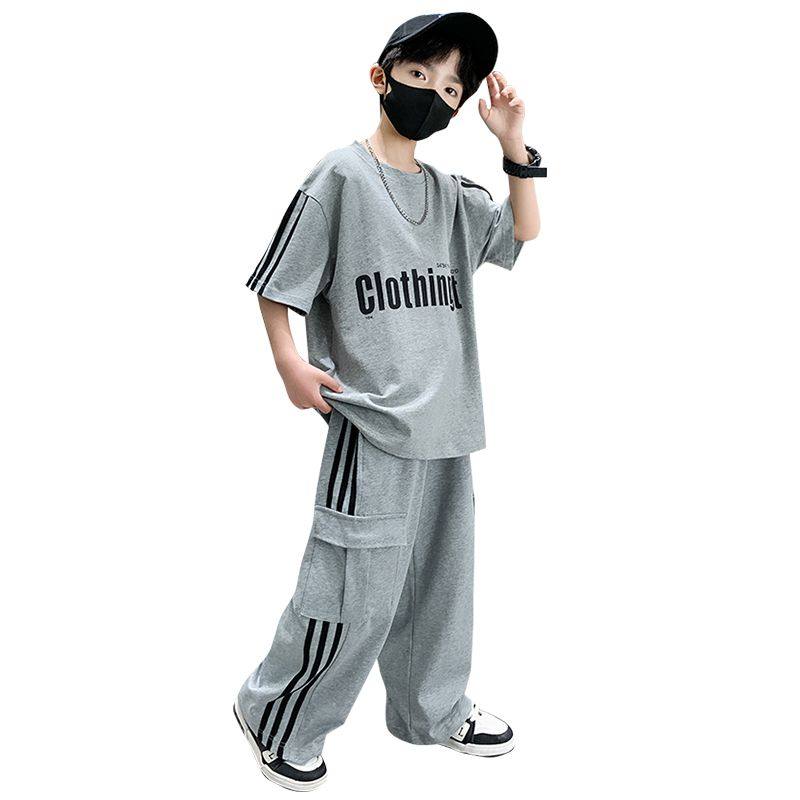 男童运动套装2025新款夏季中大童短袖夏款酷帅气休闲工装裤两件套
