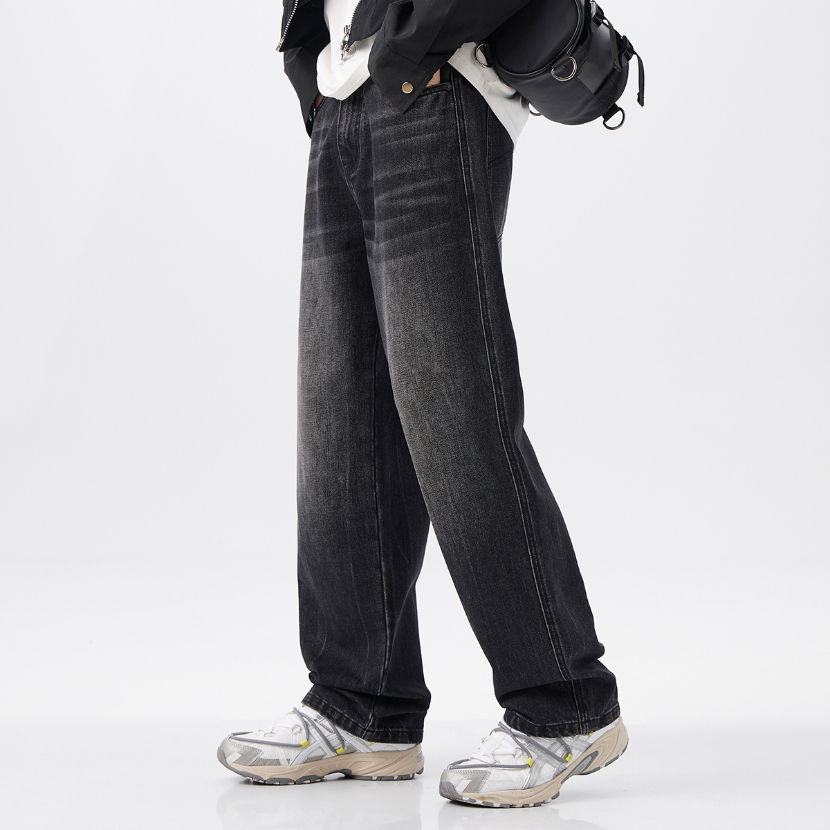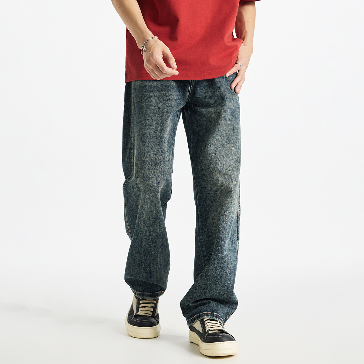 2025秋季美式百搭猫须做旧复古水洗牛仔裤男垂感宽松直筒休闲裤子