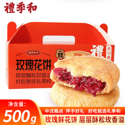 礼季和山东特产玫瑰鲜花饼零食小吃饼干点心实惠装500g传统糕点
