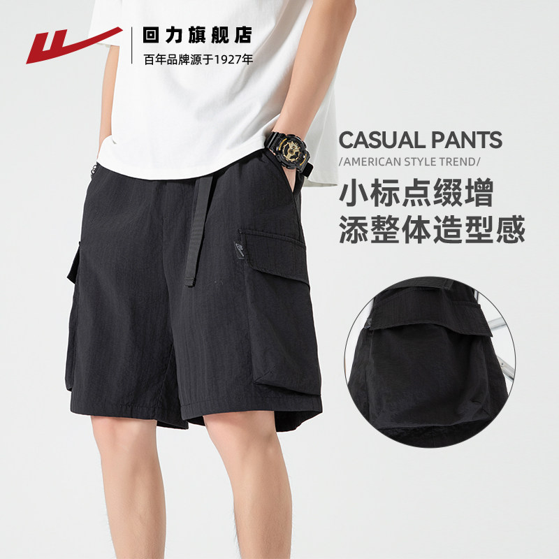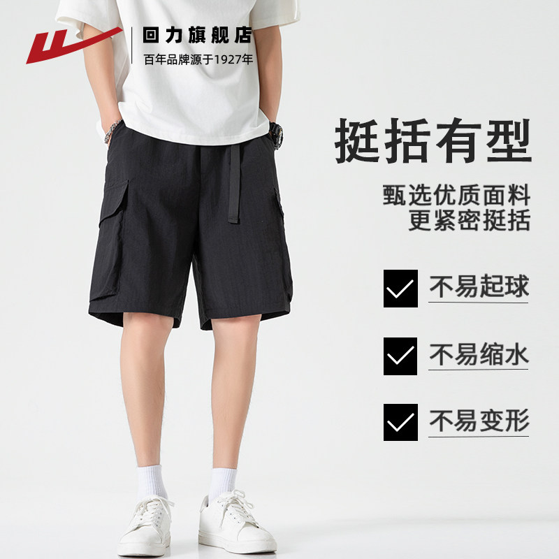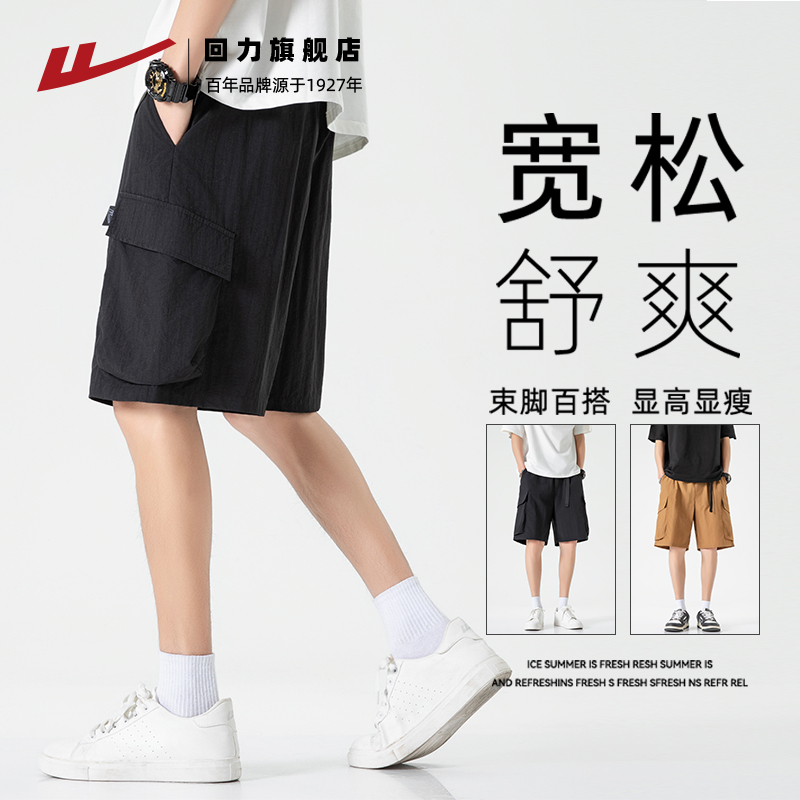 回力工装短裤男夏季2026新款薄款宽松休闲潮牌夏天冰丝五分裤男士