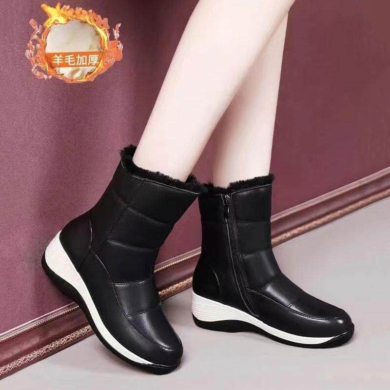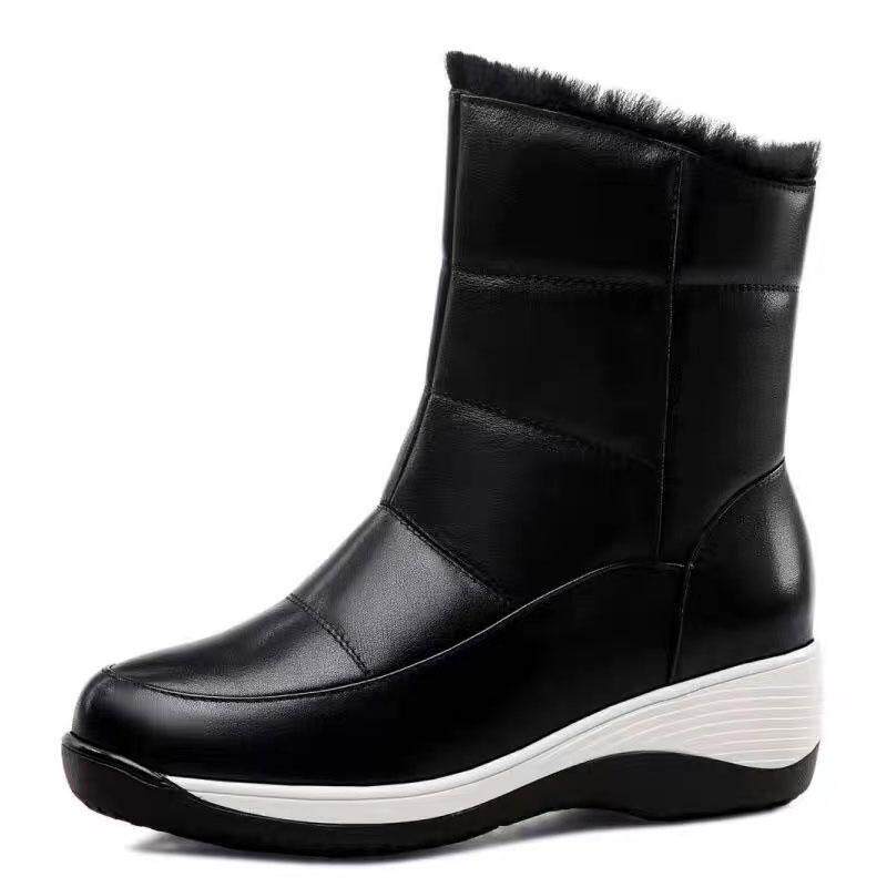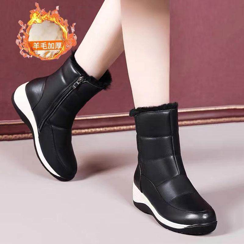 断码真皮厚底雪地靴女2025冬季加绒保暖防水防滑羊毛棉鞋坡跟大棉