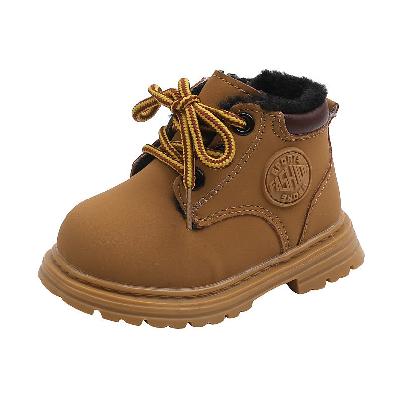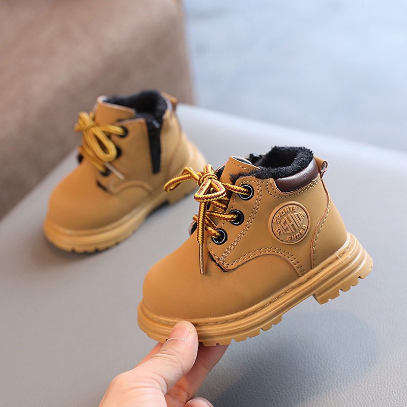 2025冬季加绒新款宝宝马丁靴1一2-3岁男女童软底婴儿学步鞋小黄靴