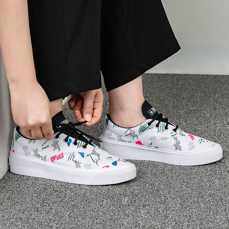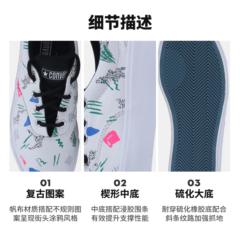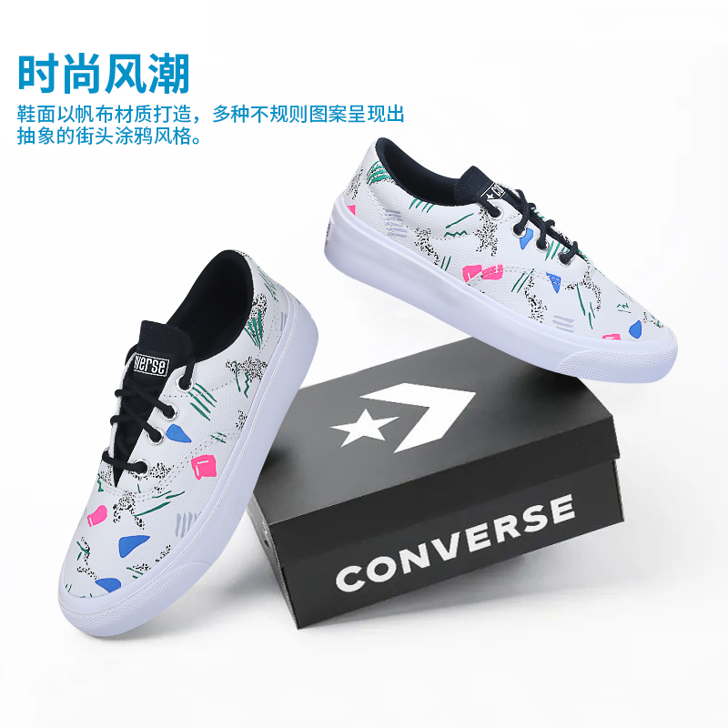 Converse匡威女鞋Skid grip低帮帆布鞋复古印花休闲板鞋 170724C