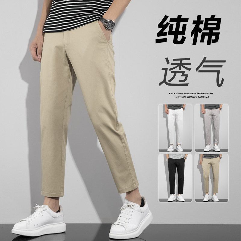 2025新款纯棉九分裤子男修身时尚弹力裤子男士小脚休闲裤春夏薄款