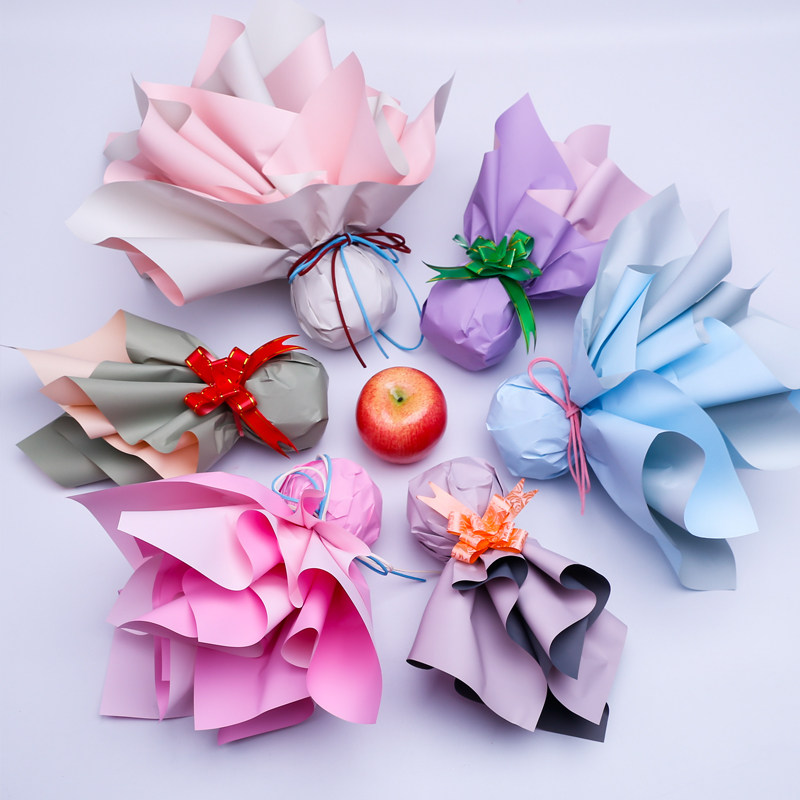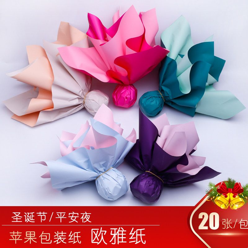 新圣诞节苹果水果礼品包装纸双面双色欧雅纸包苹果玻璃塑料纸20张