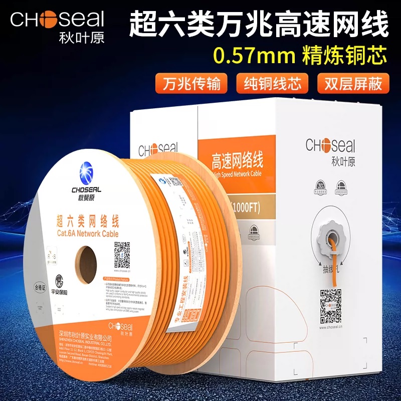 秋叶原超六类网线万兆高速非双屏蔽纯铜CAT6A工程装修家用散布线