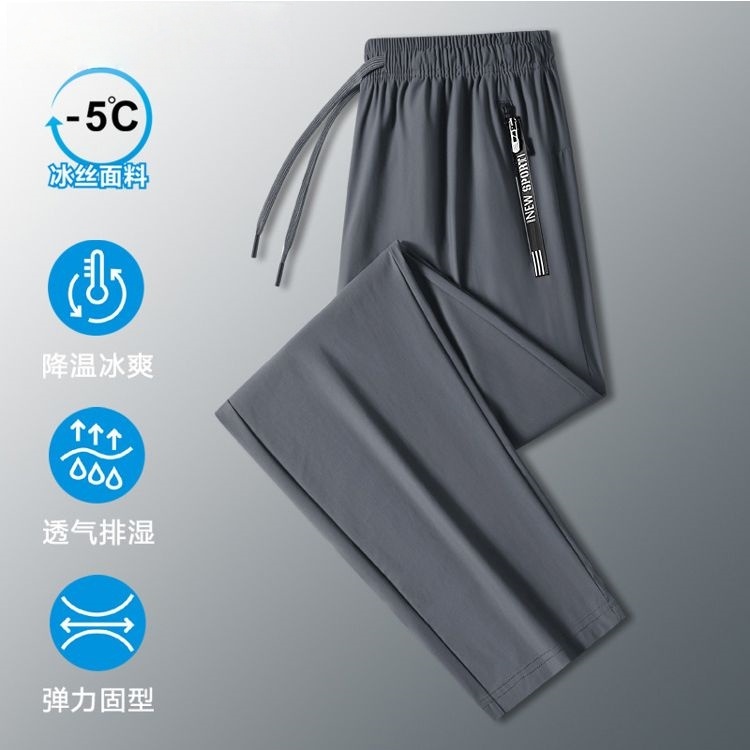 清仓捡漏~冰丝男士运动裤夏季薄款透气直筒休闲裤大码宽松弹力裤