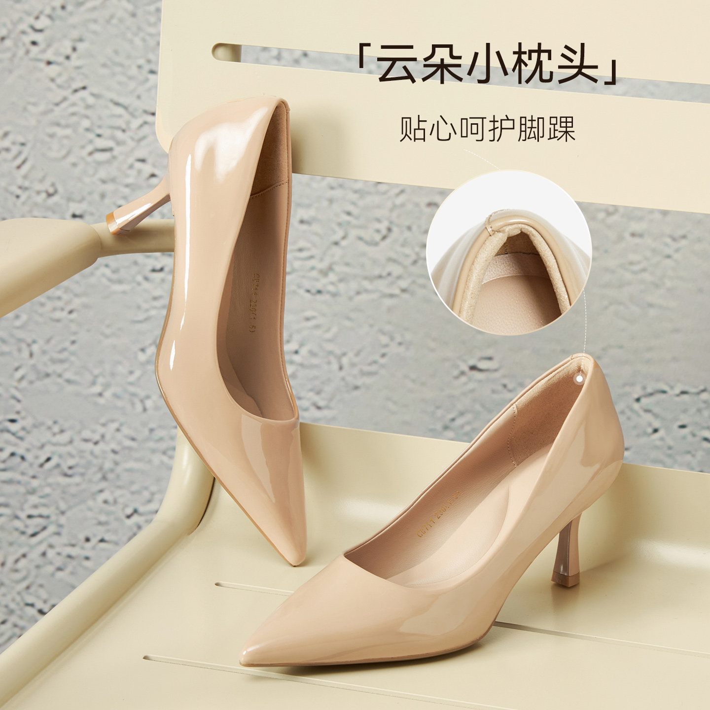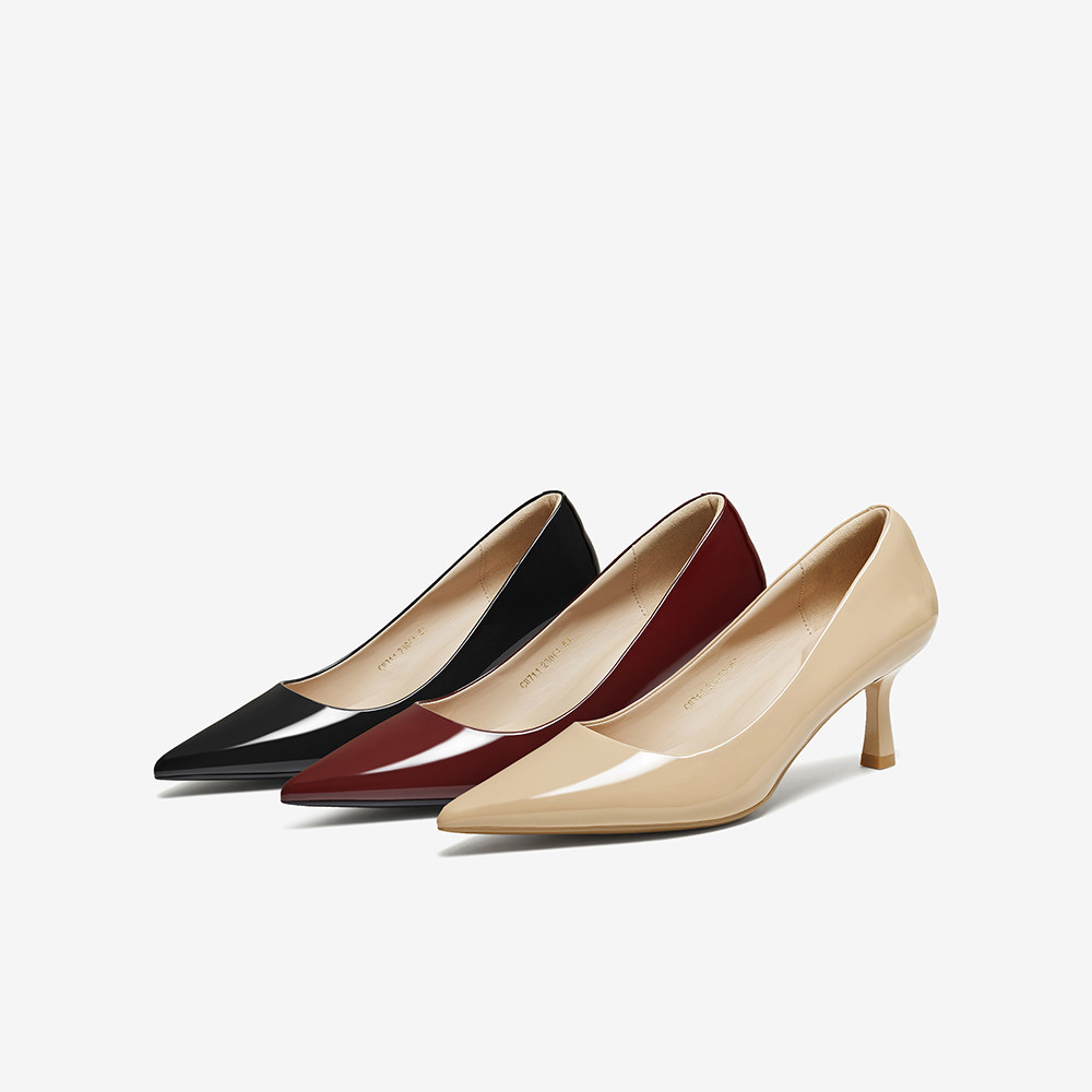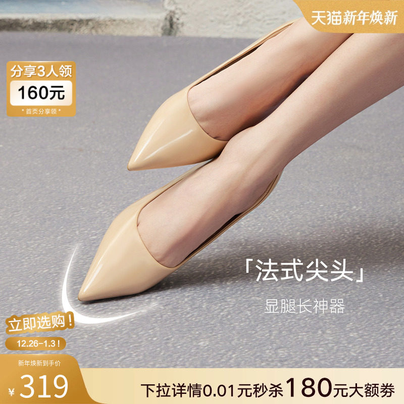 百思图2025秋季商场新款浅口单鞋裸色细跟高跟鞋尖头女鞋CU711CQ5