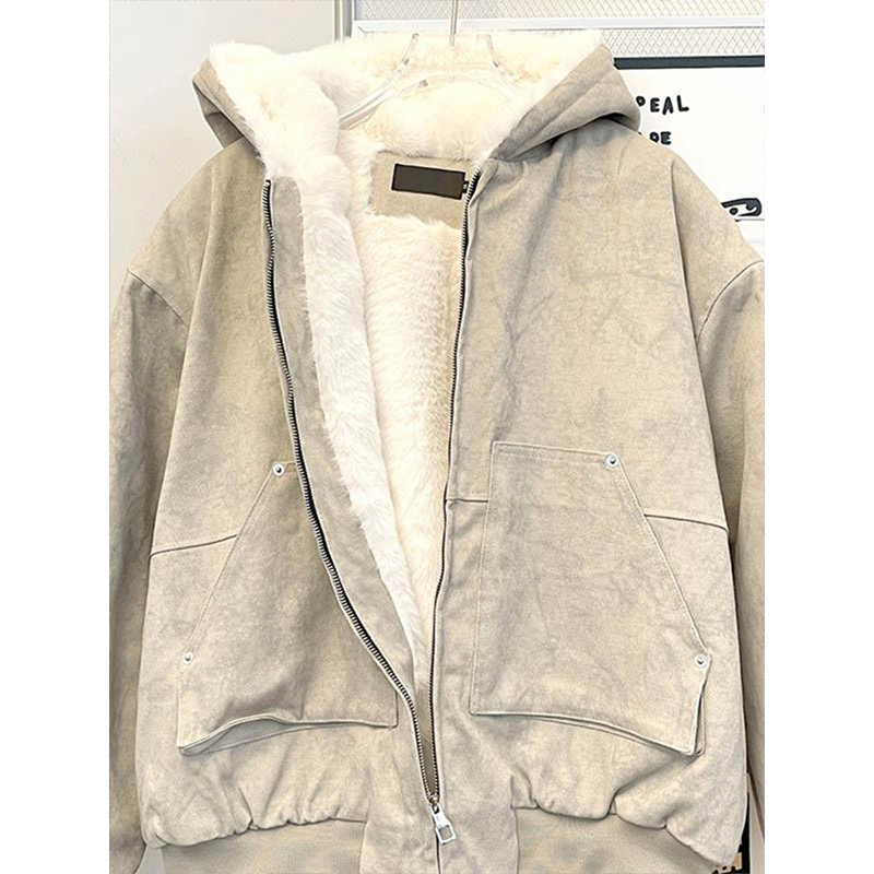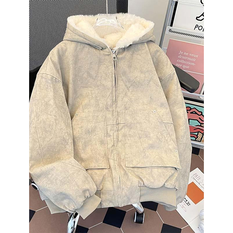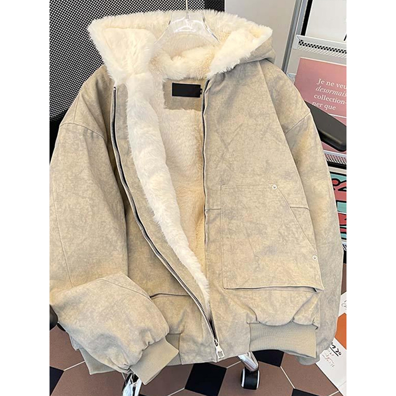 特大码胖mm加绒加厚连帽棉服女冬装美式高街加厚保暖防寒棉衣外套