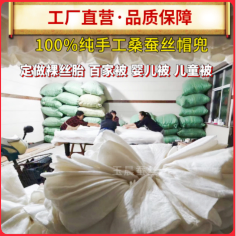 古法纯手工桑蚕丝100%手剥双宫丝帽兜裸胎定做婴儿被百家被儿童被
