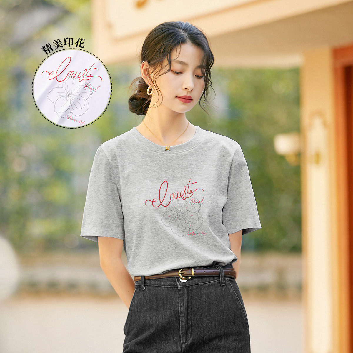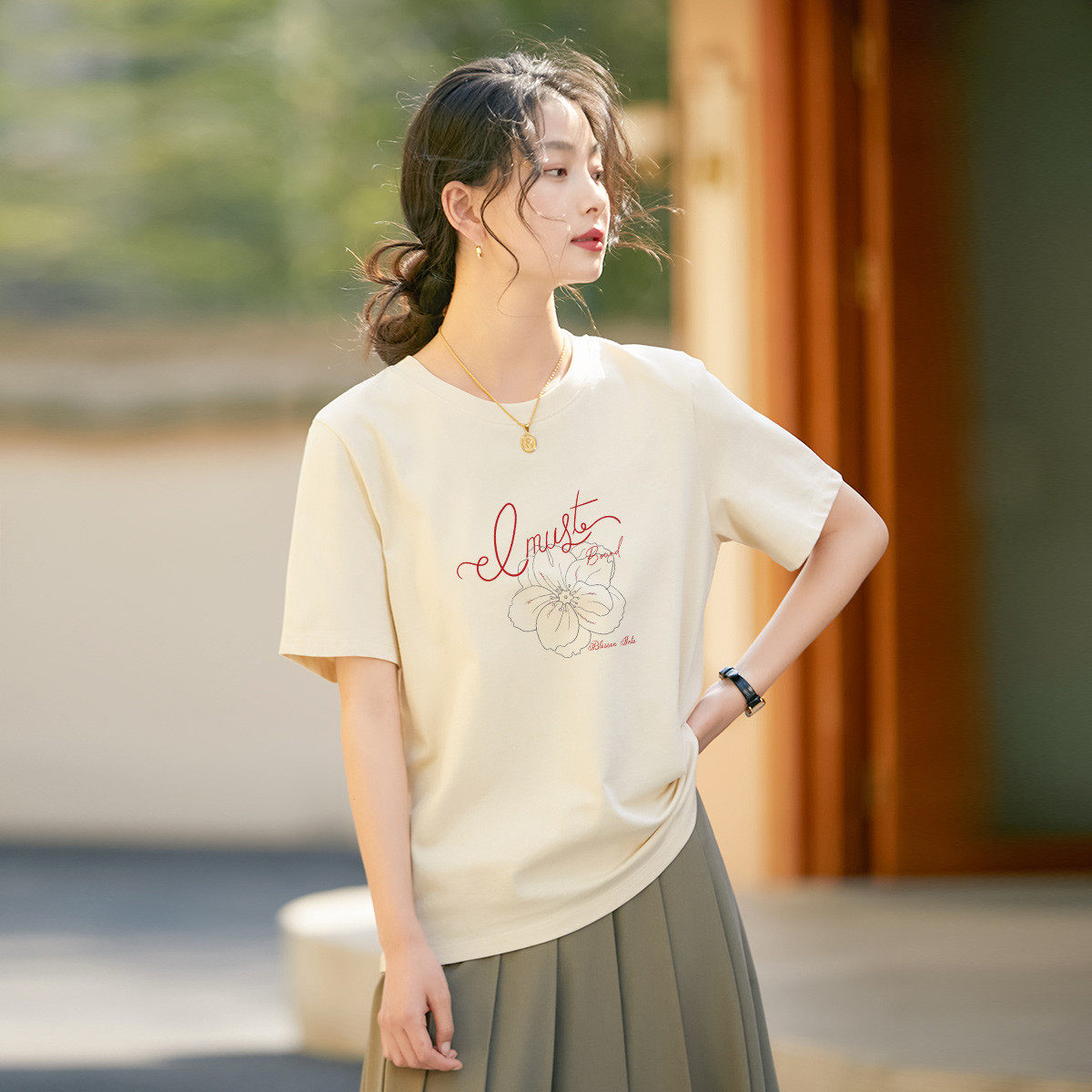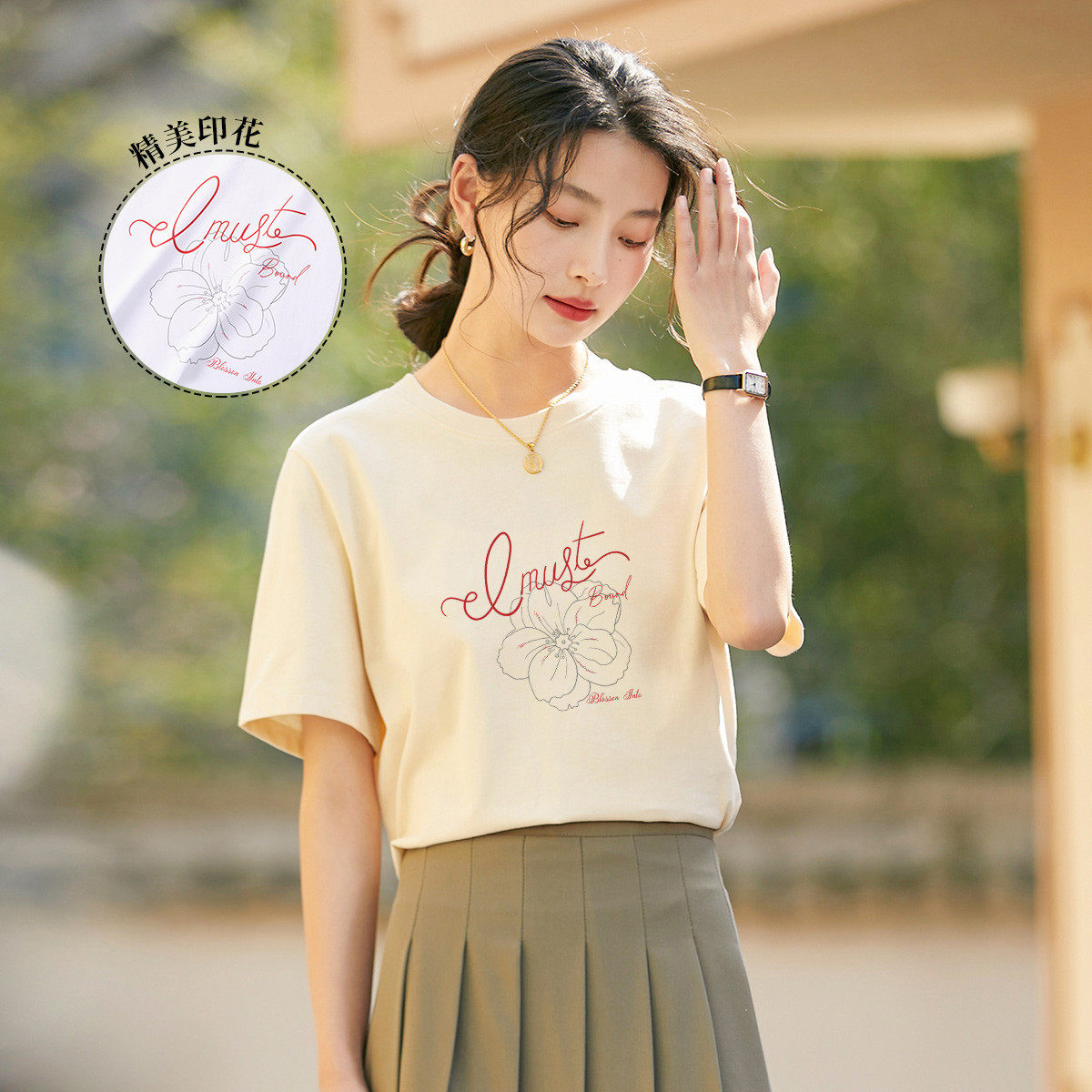 茵曼2026夏季新款正肩纯棉短袖T恤女宽松独特超好看上衣白色爆款