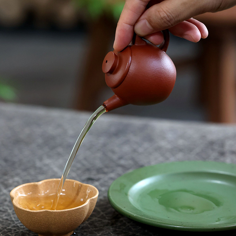 一水堂宜兴原矿手工紫砂壶家用泡茶壶朱泥巨轮珠65和140毫升