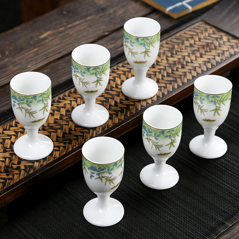 盈捷陶瓷酒杯酒盅白酒杯烈酒杯高脚杯日式小酒杯单白杯酒具套装